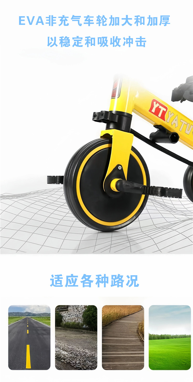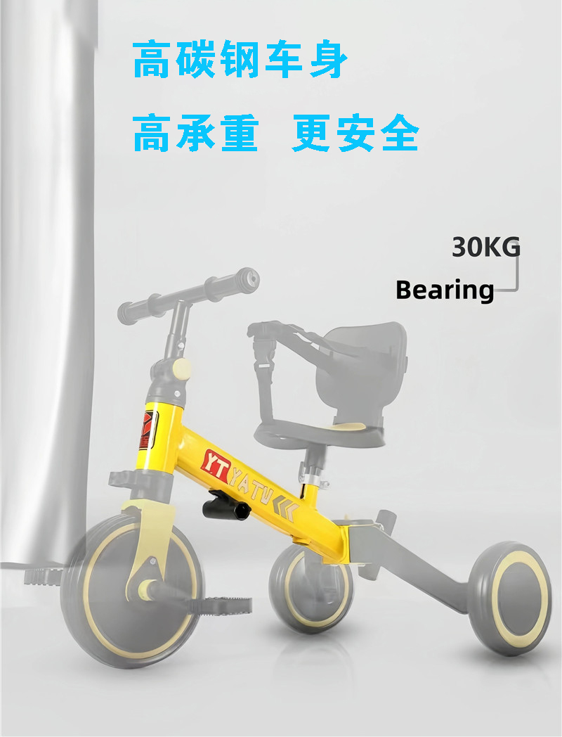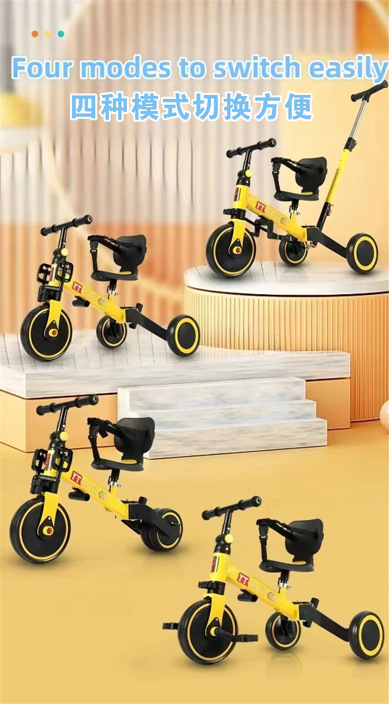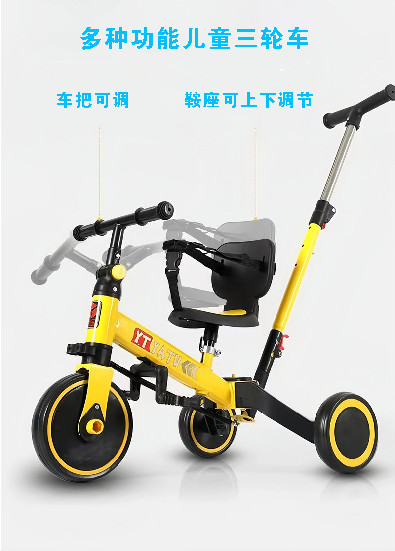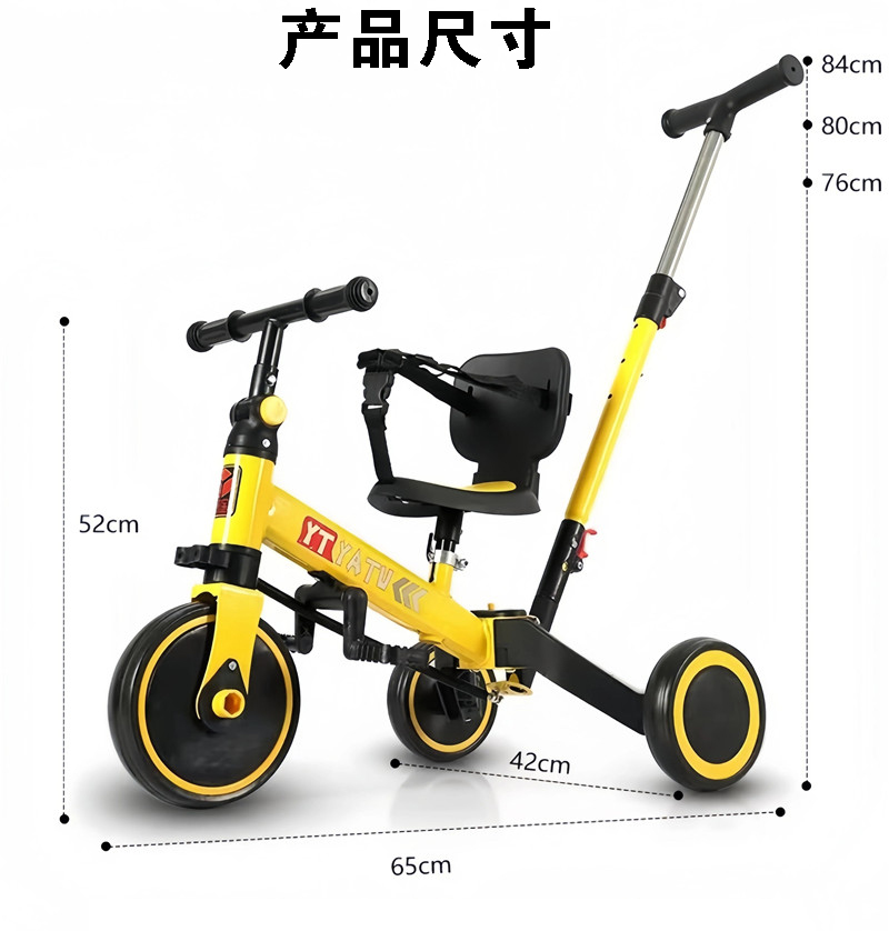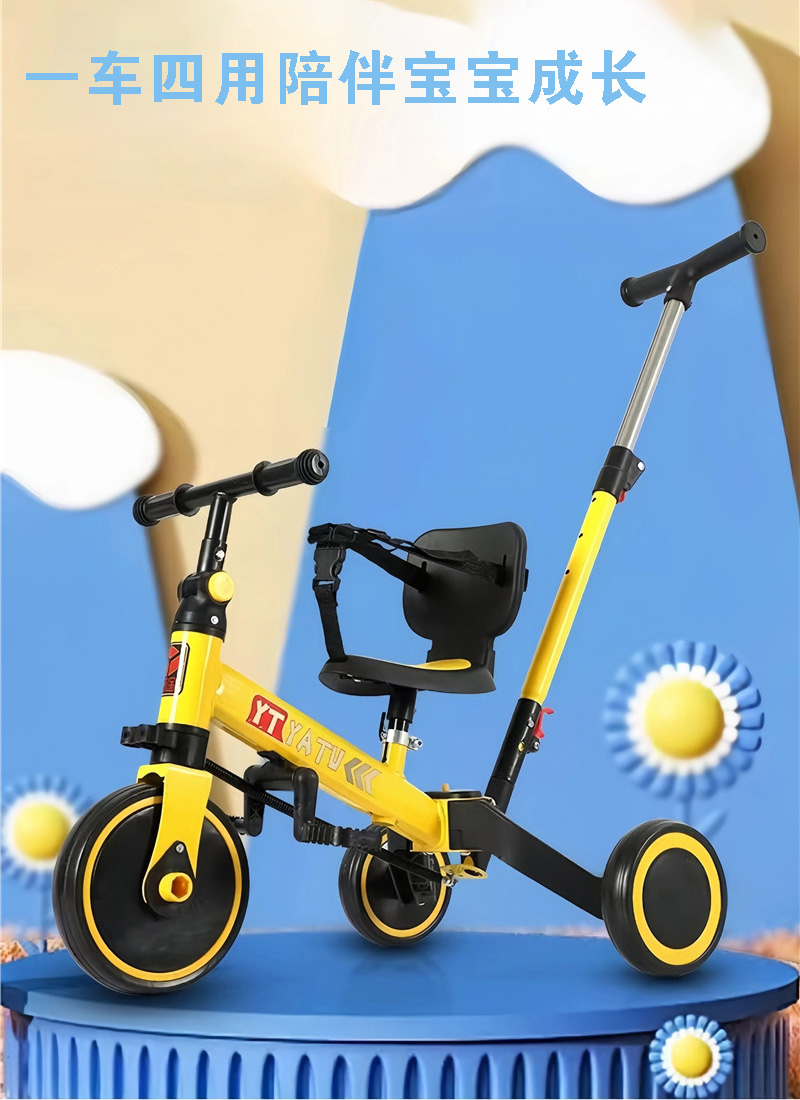 4合1折叠婴儿三轮车儿童自行车带推杆适用于2-4岁和5-7岁3轮婴儿慢跑者