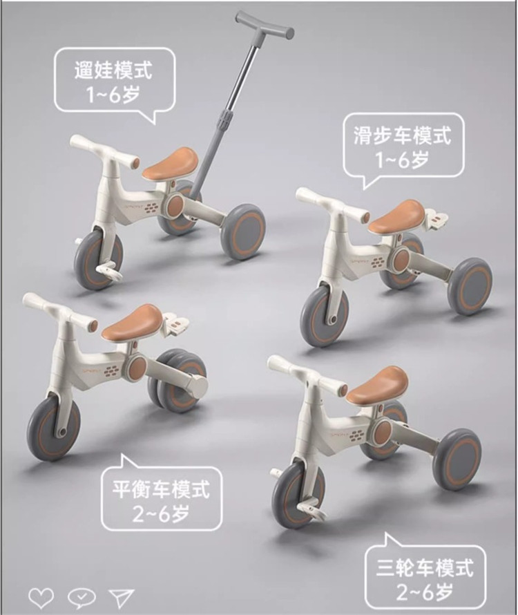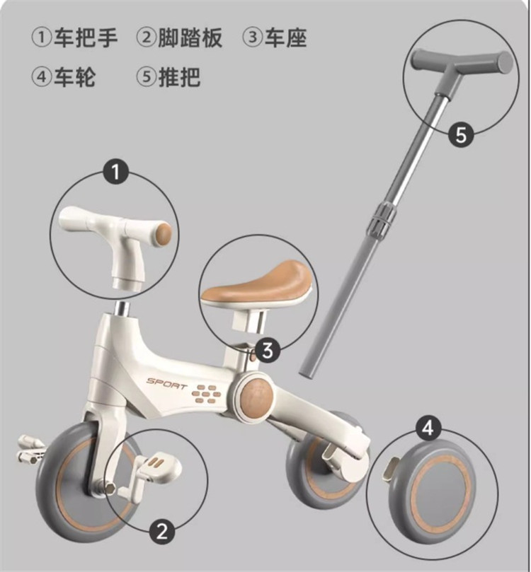 儿童三轮车1-3-6岁平衡车脚踏车可推小孩多种功能轻便可折叠滑步车