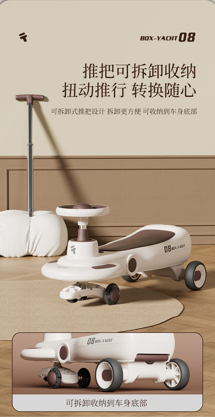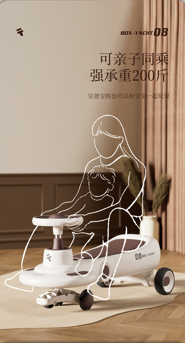 儿童扭扭车摇摆车亲子溜溜车加长推把防侧翻可坐大人滑行车