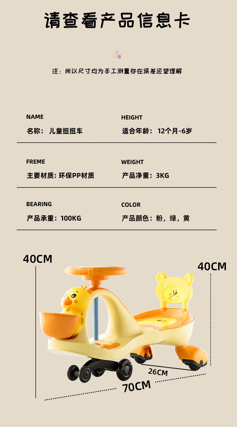 儿童扭扭车防侧翻大人可坐1到3-6岁溜溜车静音轮宝宝摇摆妞