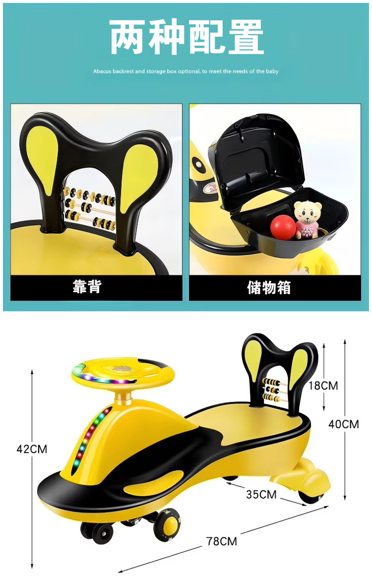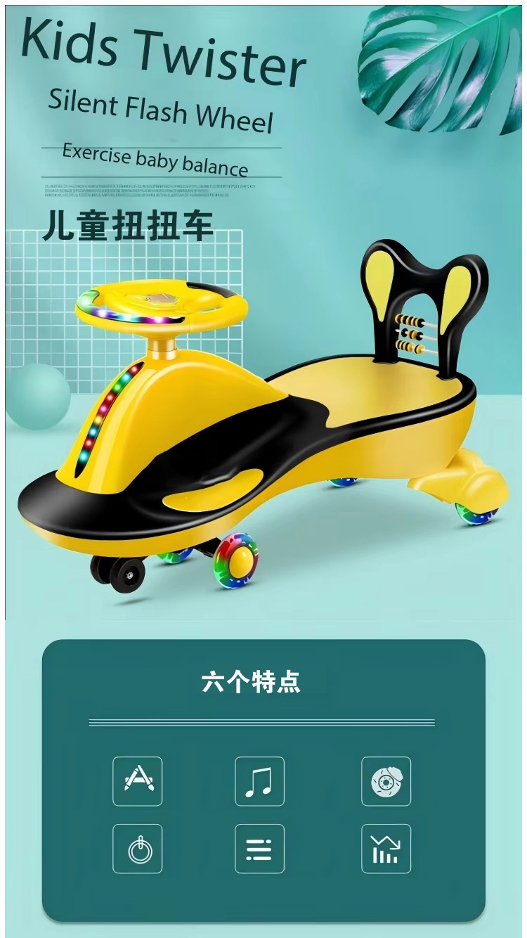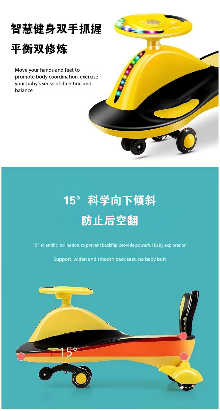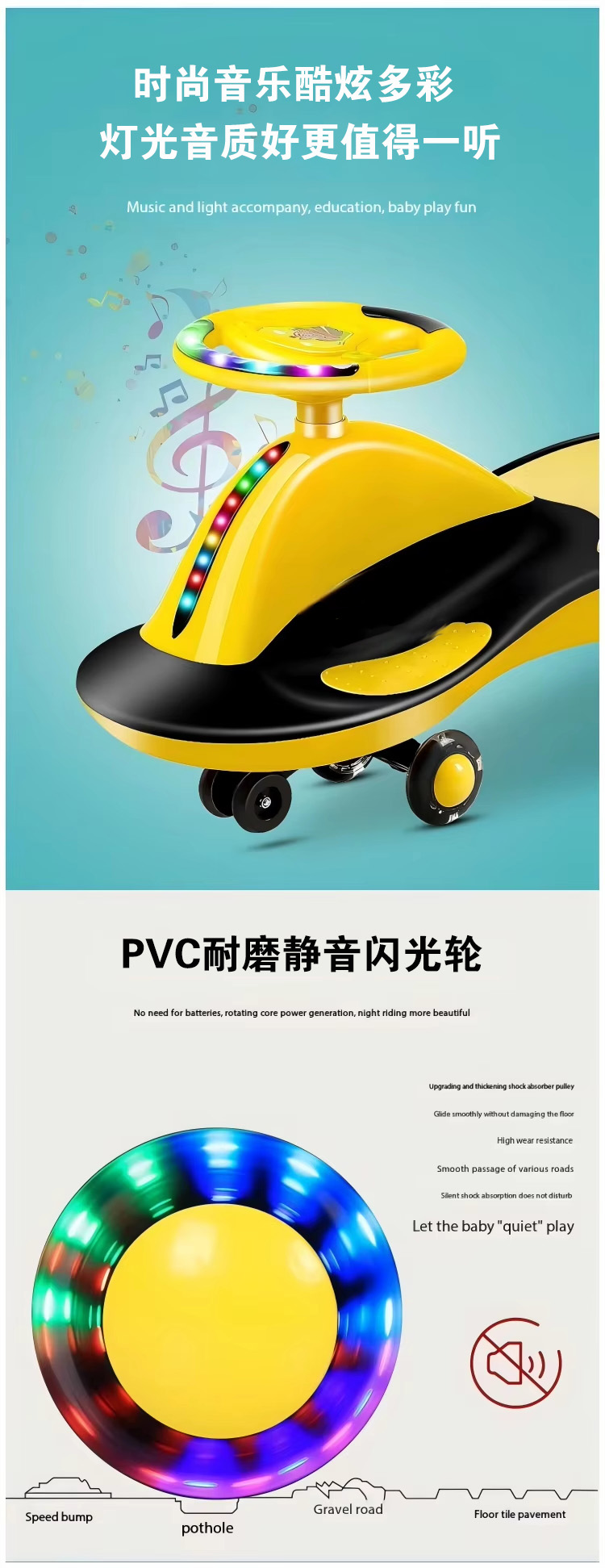 儿童骑秋千婴儿扭转车 带音乐和灯光Pu闪光轮婴儿扭转车摇摆车滑动玩具