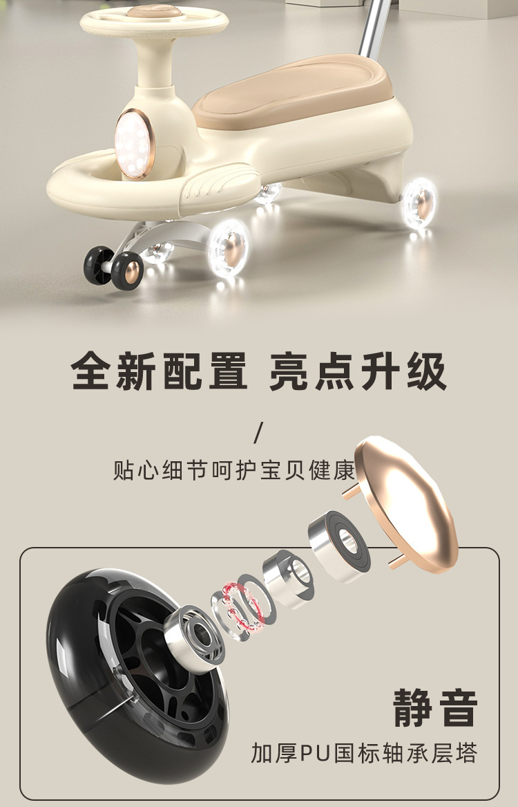 新款儿童扭扭车防侧翻万向轮静音闪光轮滑行大人可坐男女孩溜溜车
