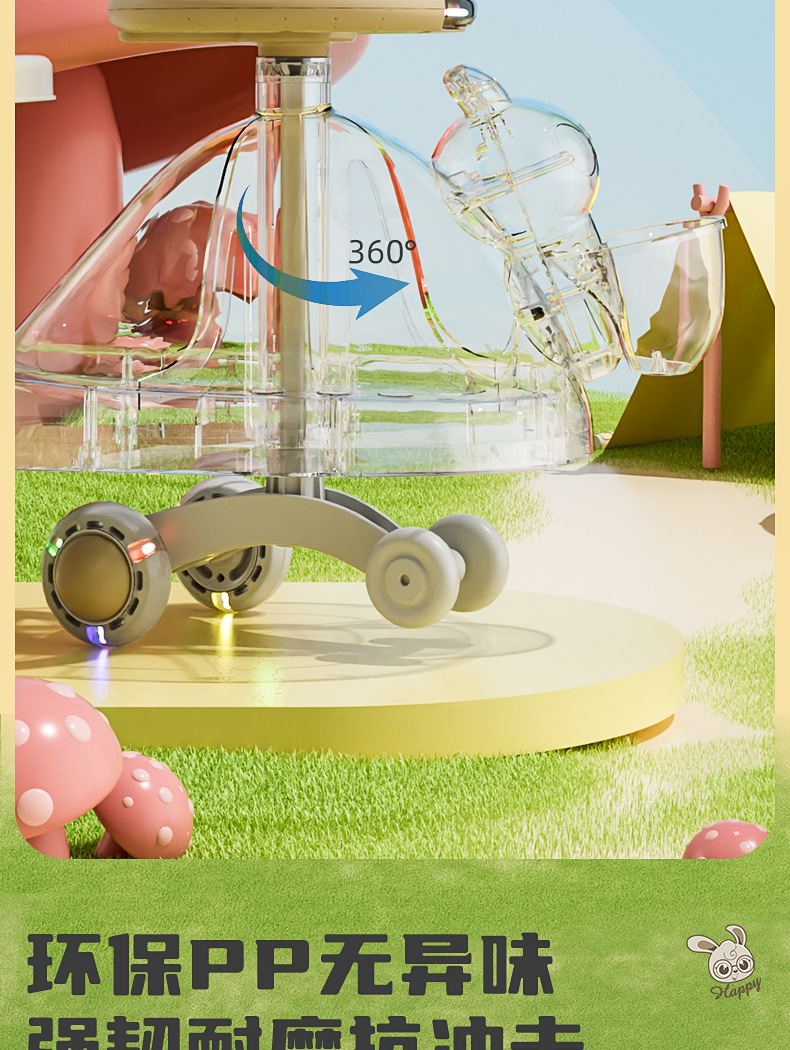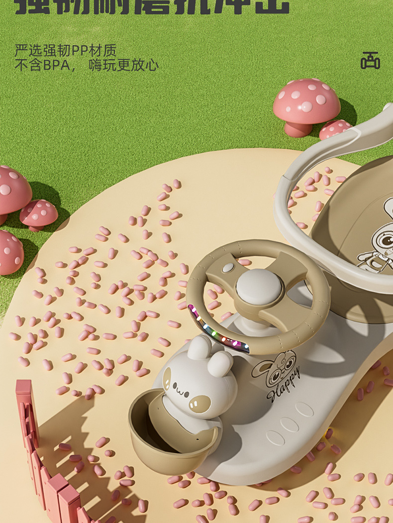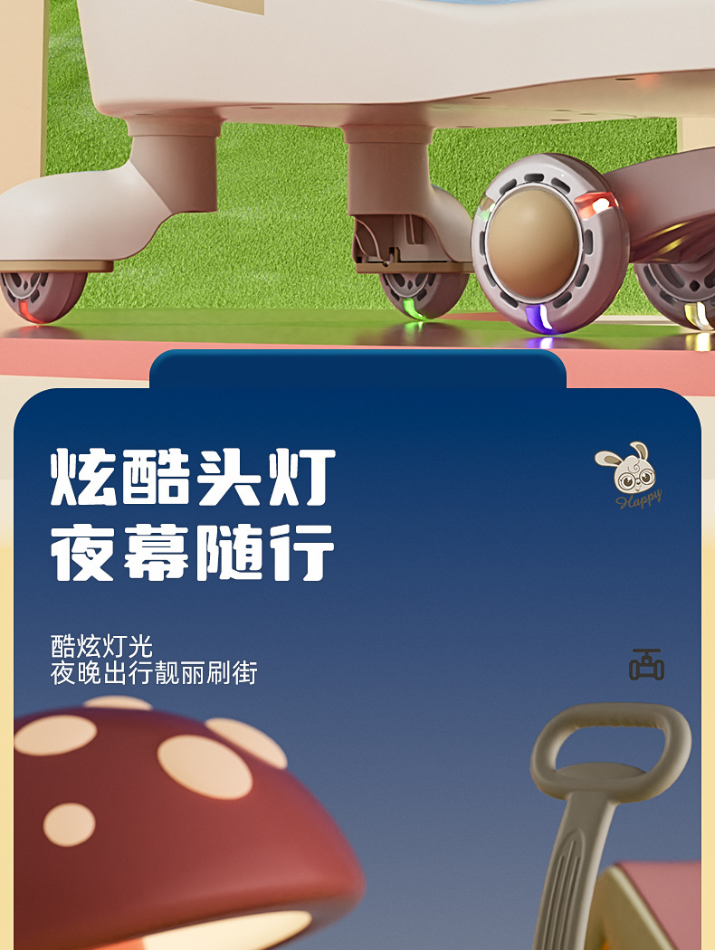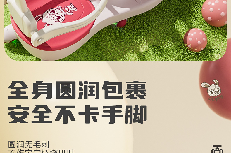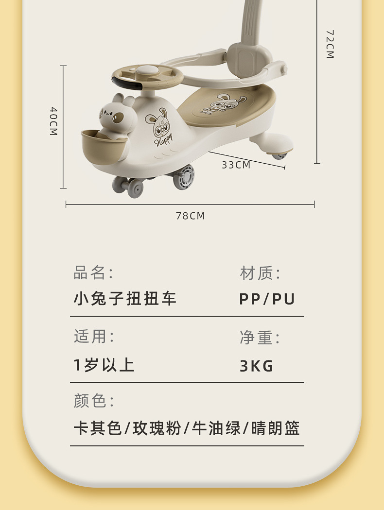 小兔款天青蓝,小兔款玫瑰粉,小兔款卡其色,小兔款牛油绿。推把,静音轮