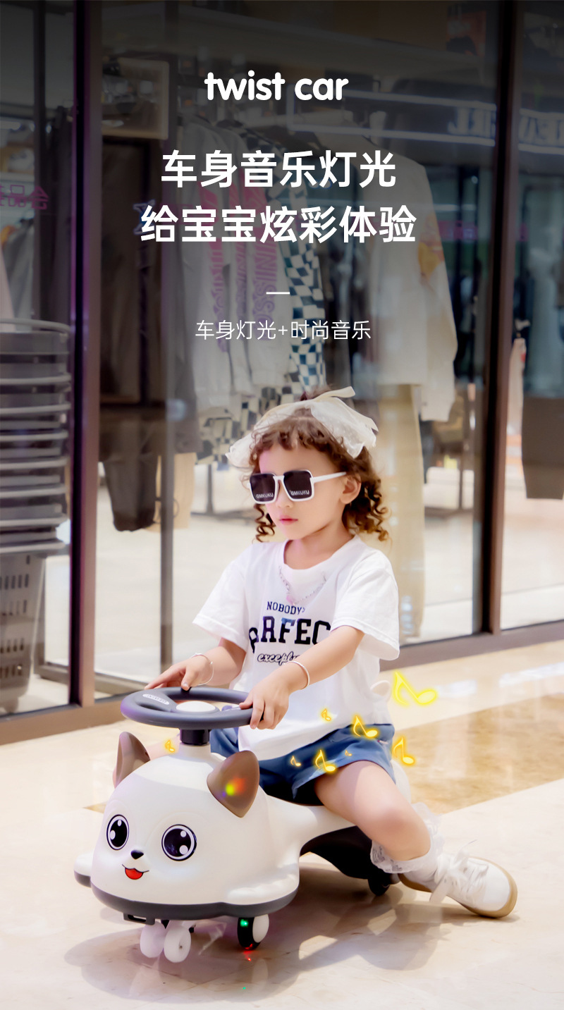 儿童骑秋千婴儿扭转车 带音乐和灯光Pu闪光轮婴儿扭转车摇摆车滑动玩具