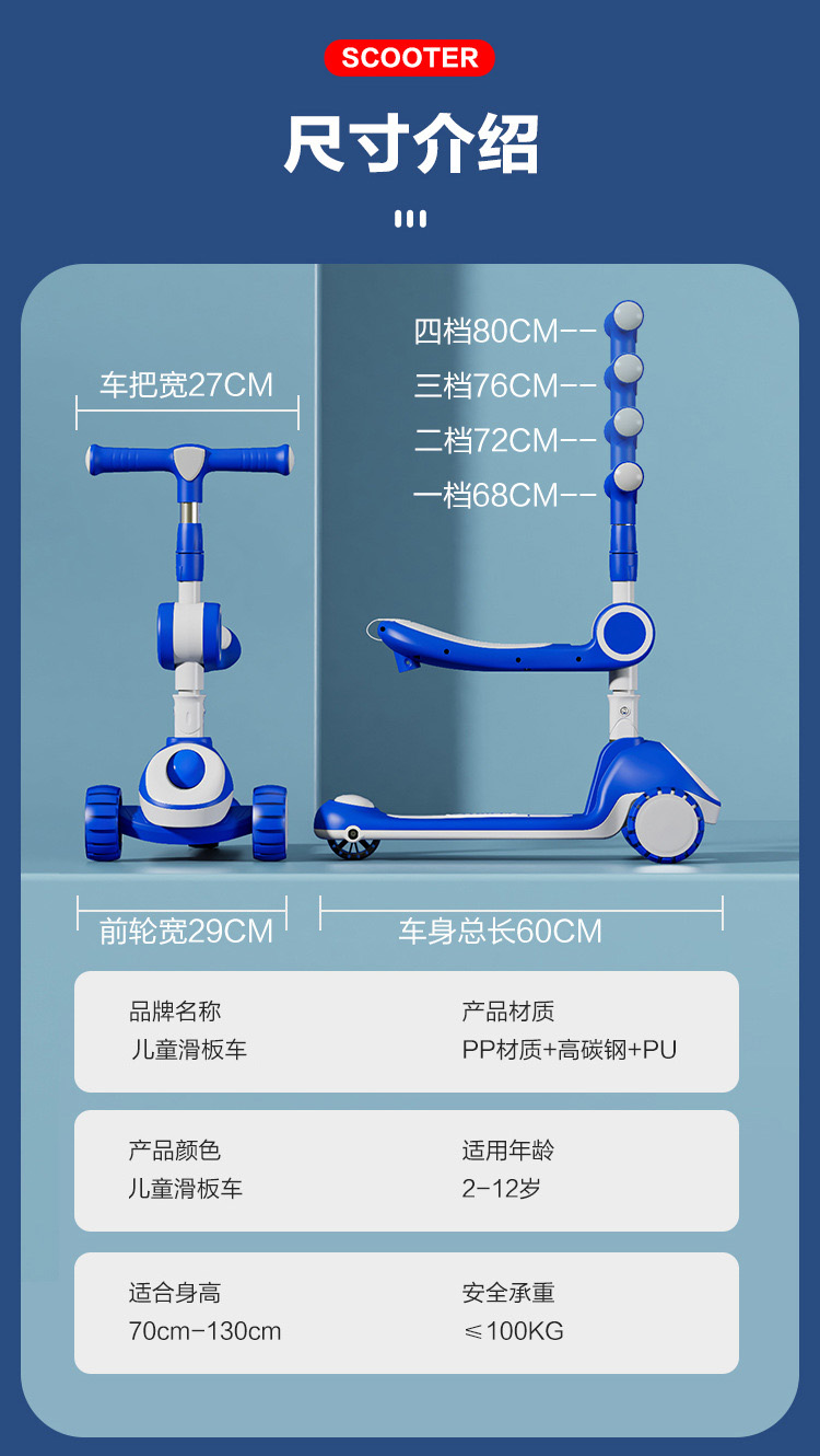 滑板车儿童2-6-8岁可坐可折叠双脚踩踏板二合一滑行车溜溜车