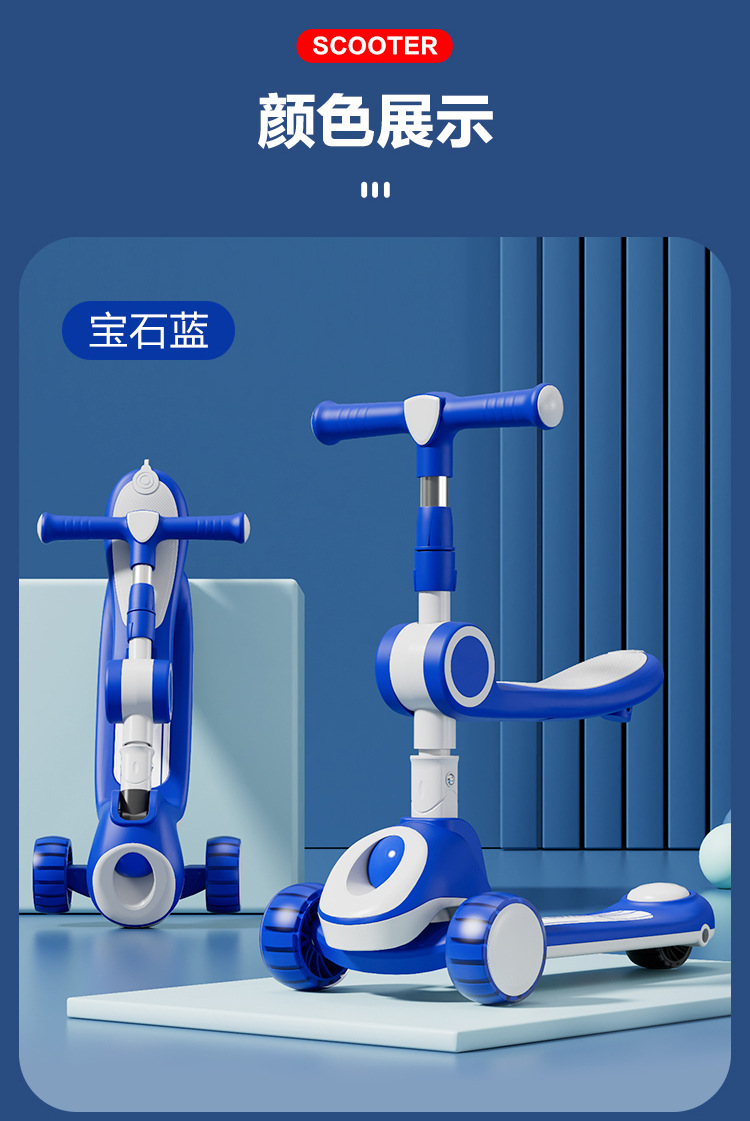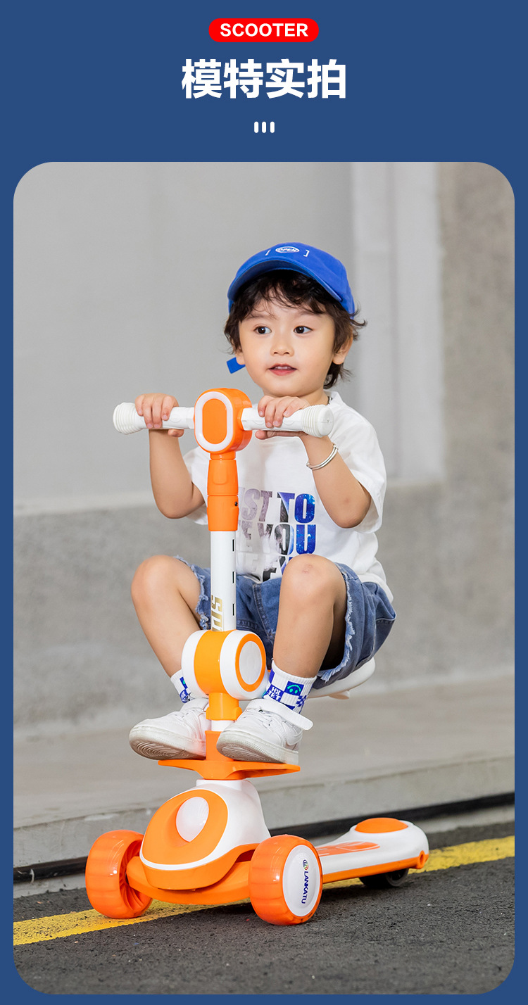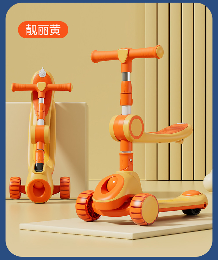 儿童滑板车带座三合一2-6岁男女孩可坐可滑音乐米高滑行车溜溜车