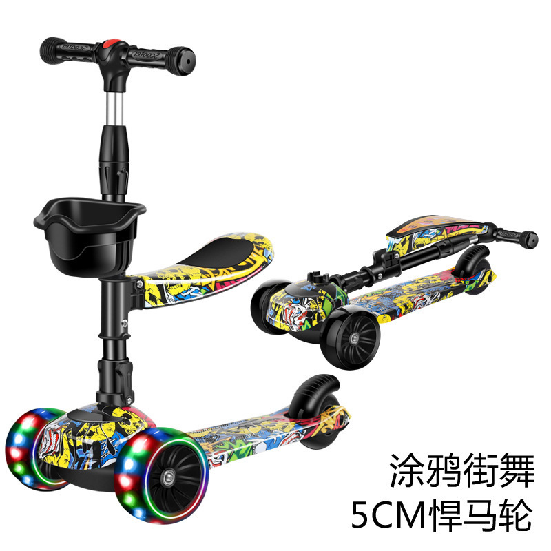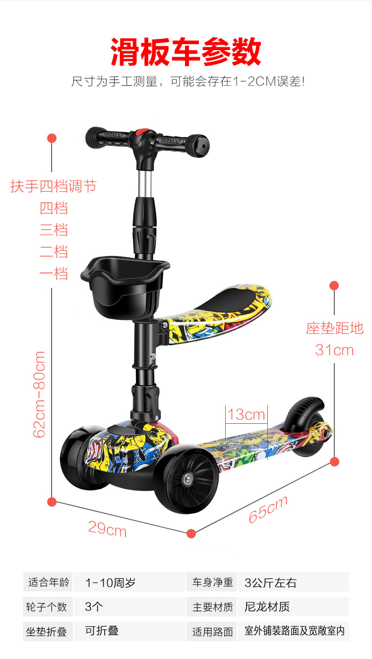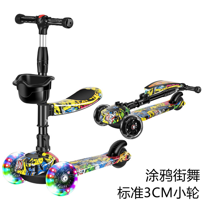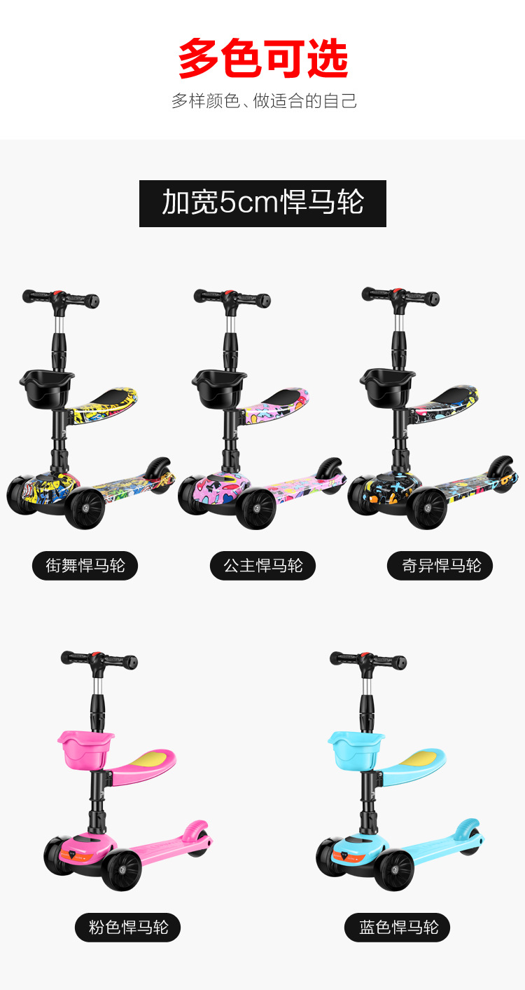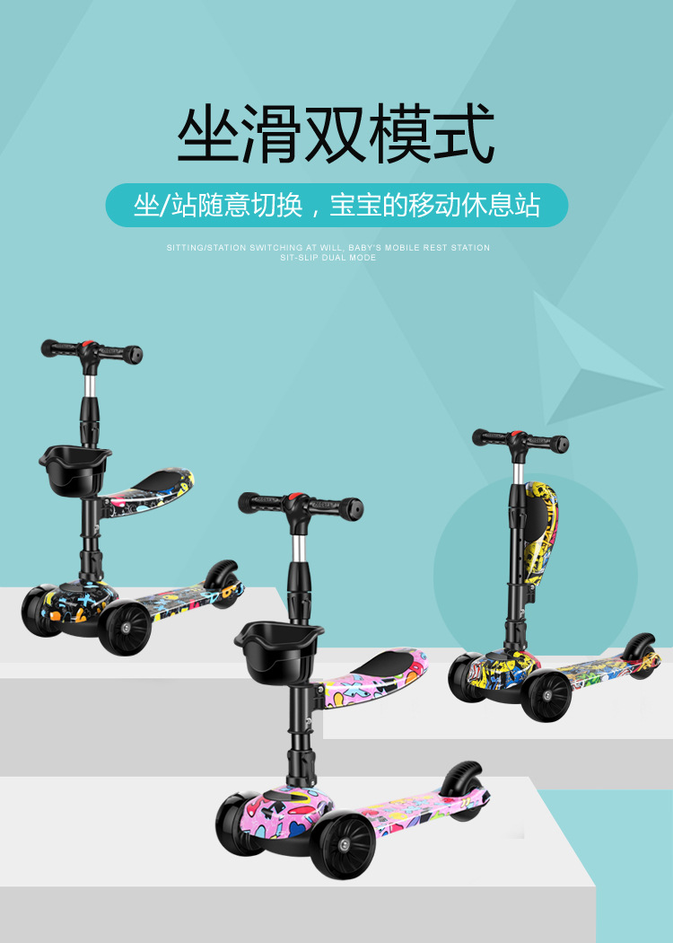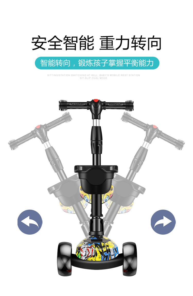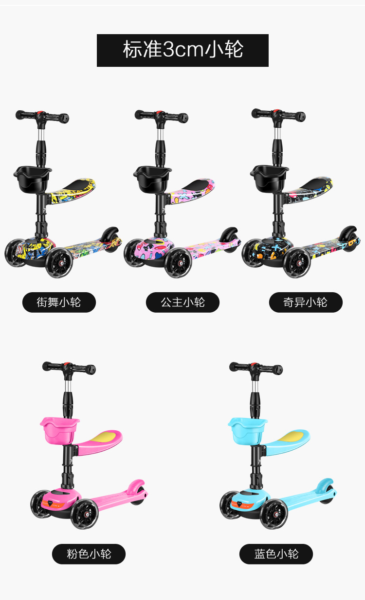 儿童滑板车带座三合一2-6岁男女孩可坐可滑音乐米高滑行车溜溜车
