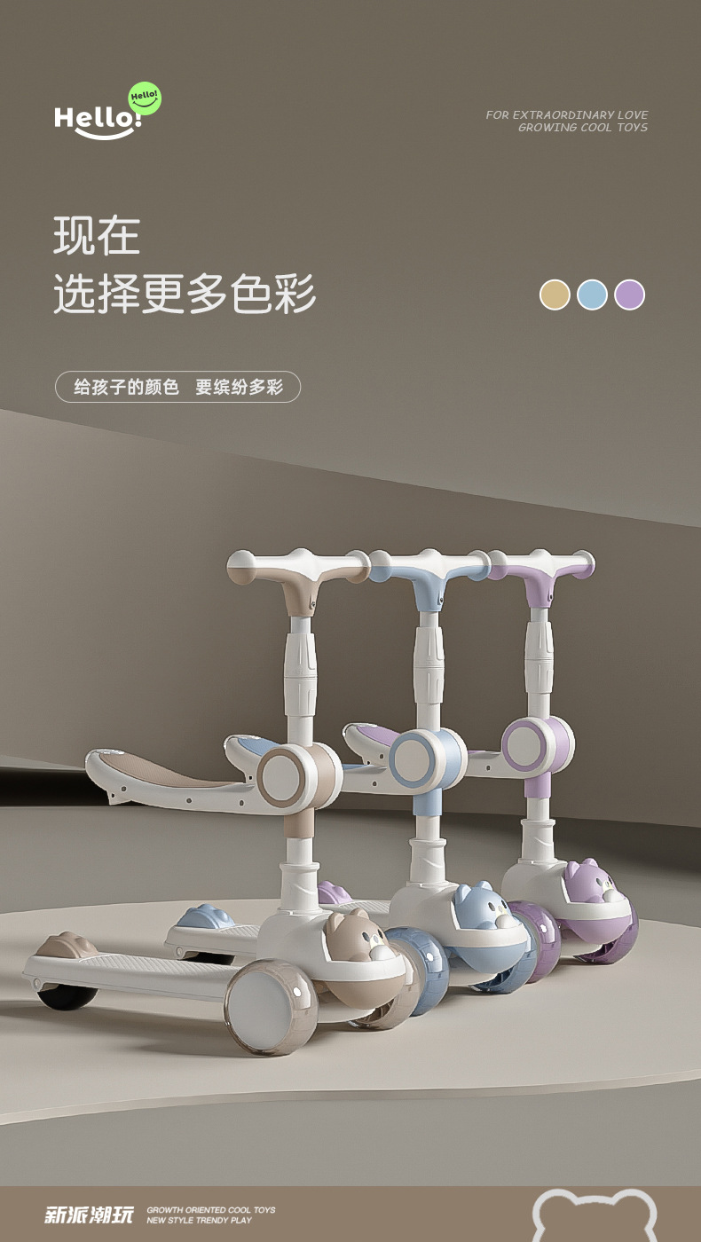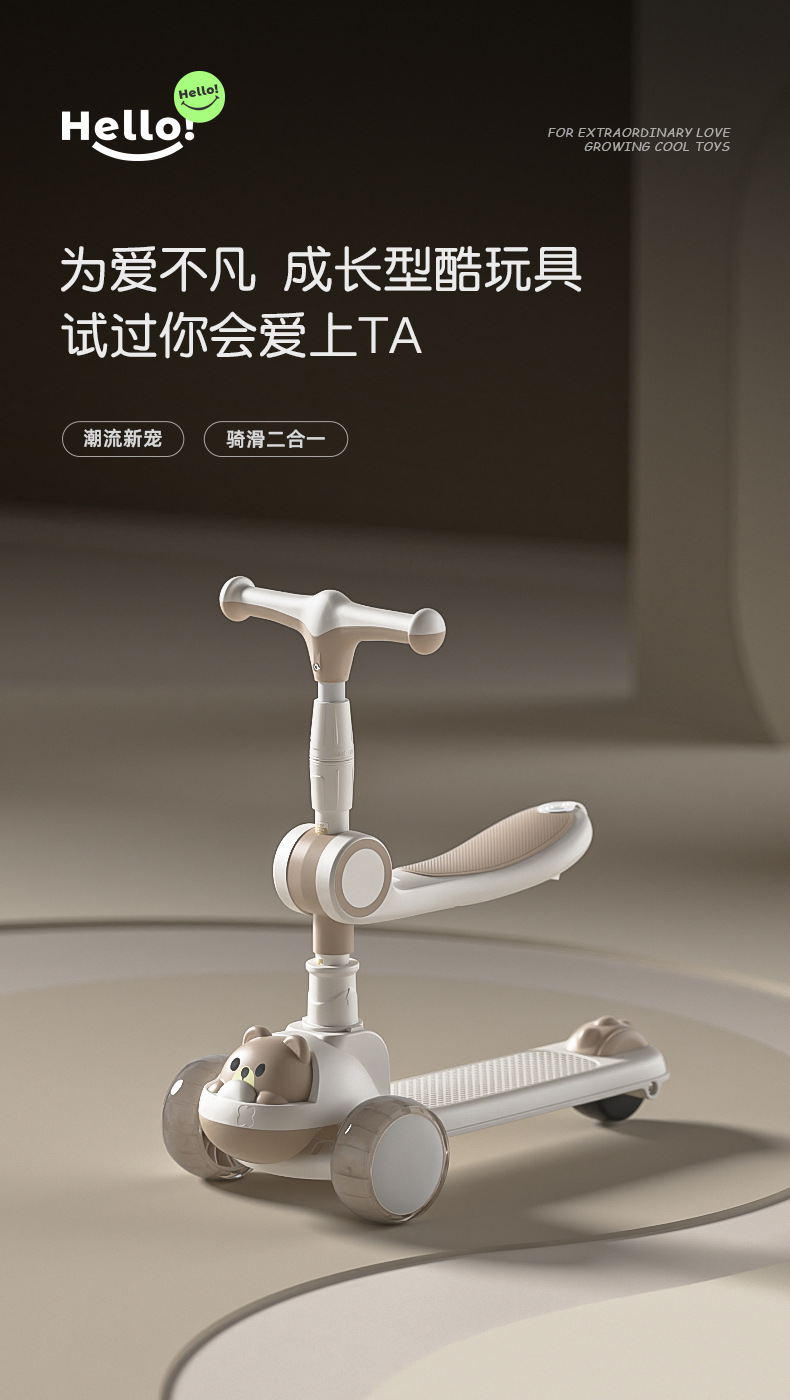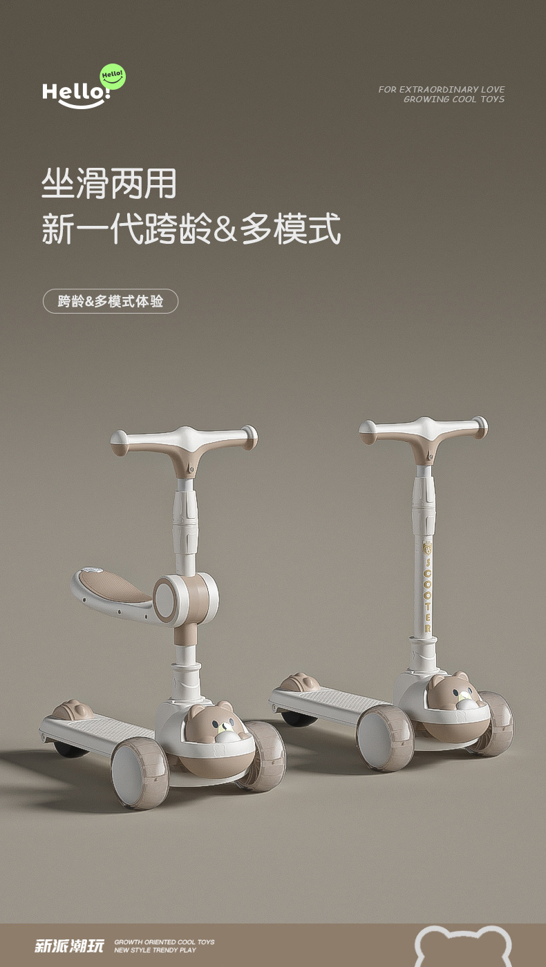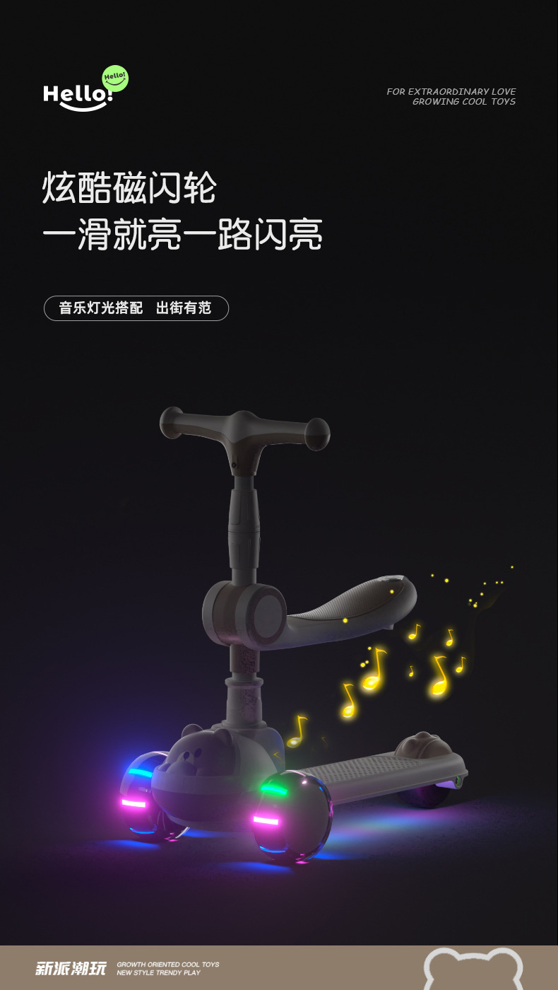 儿童滑板车1-3-6-12岁宝宝三合一音乐灯光滑滑车滑板车带座滑板车