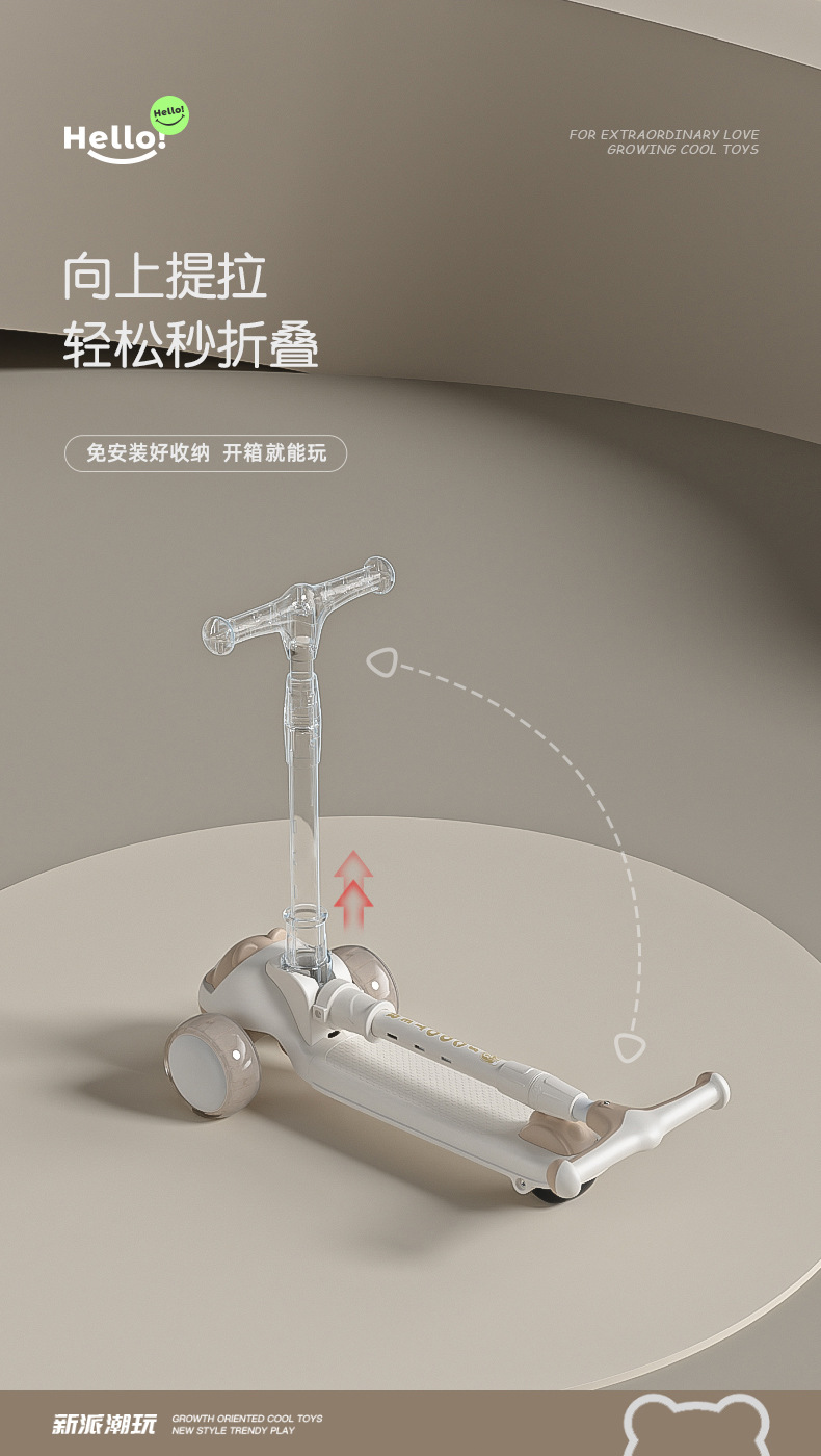 滑板车乐迪小爱动漫卡通可折叠飞机头儿童滑板车卡通滑板车