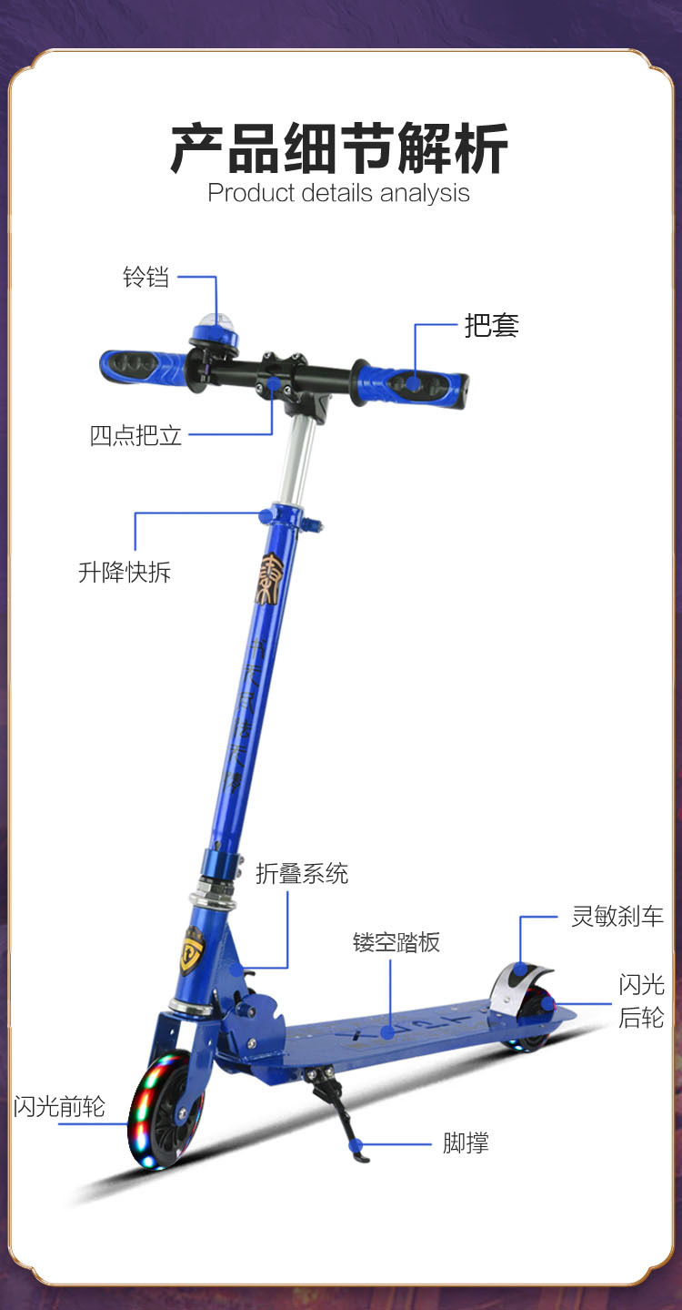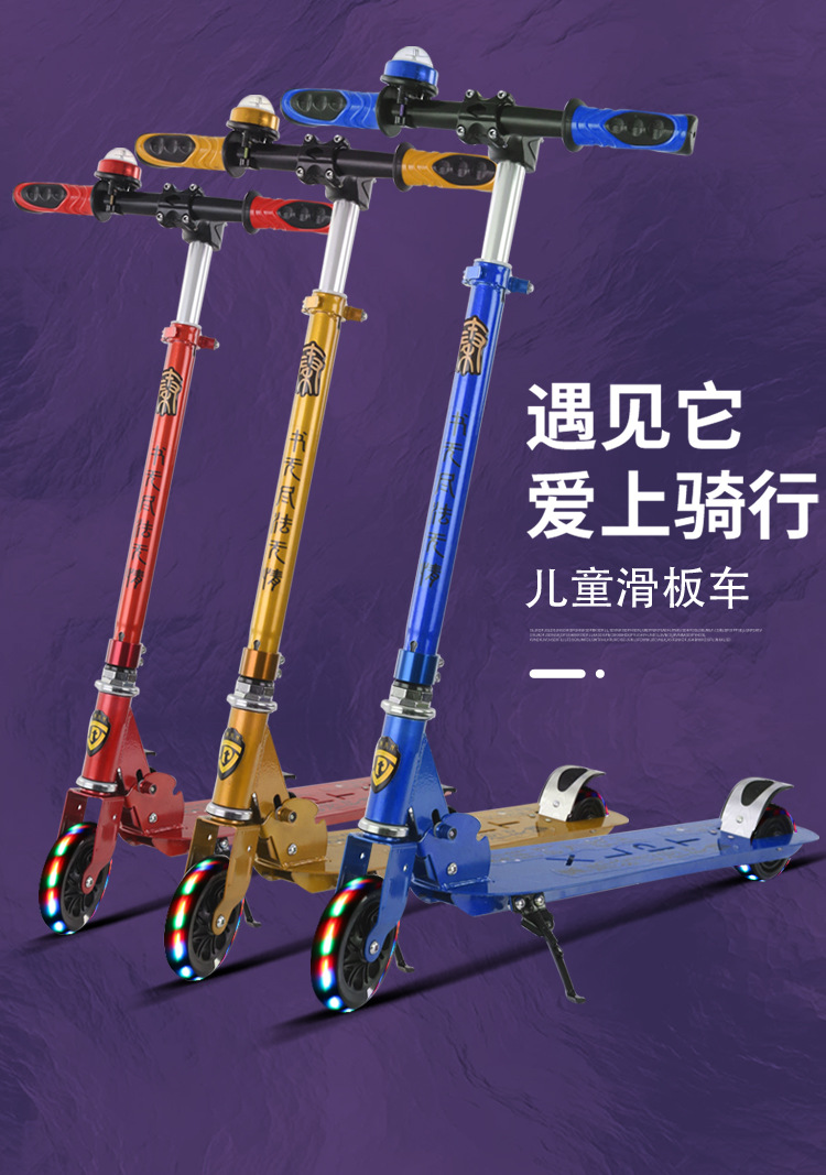 儿童滑板车四轮闪光可折叠溜溜车加厚踏板滑行车2-3-6宝宝滑滑车