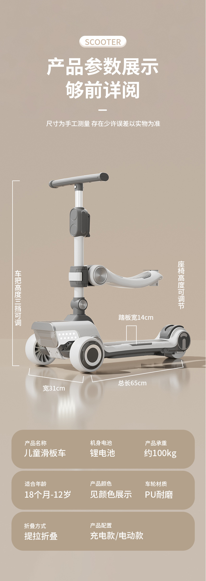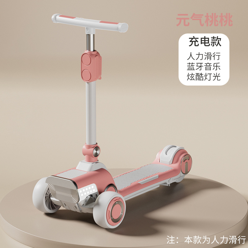 儿童滑板车中大童可充电电动滑板车可折叠加宽加大多种功能滑行车