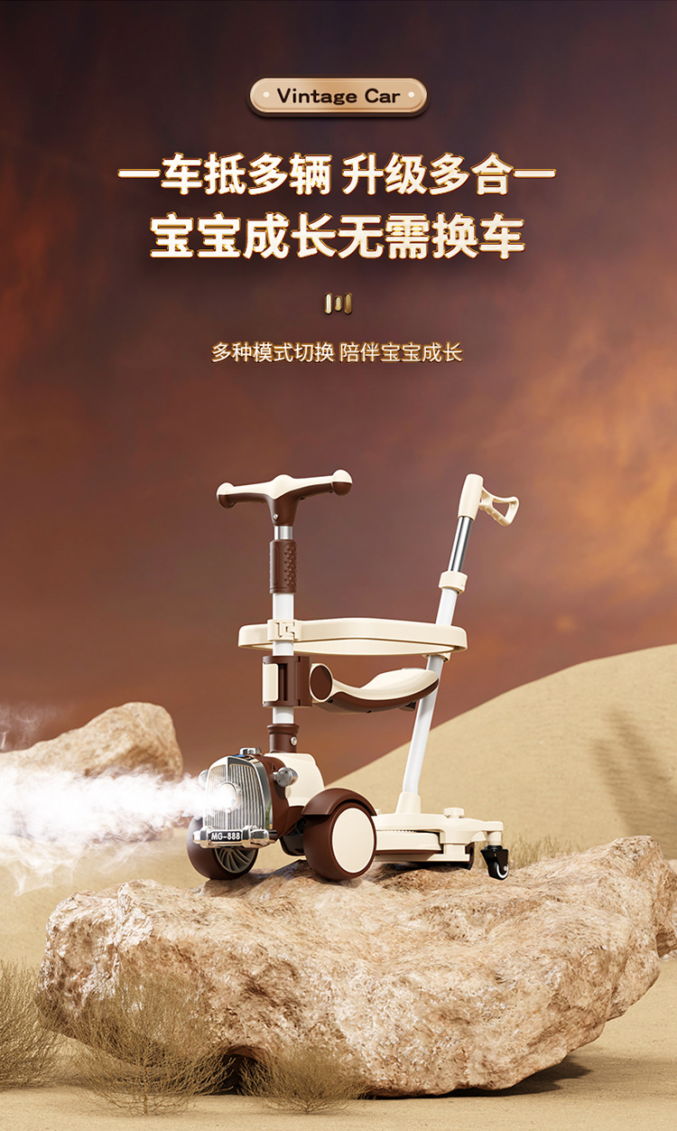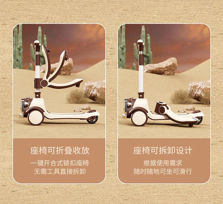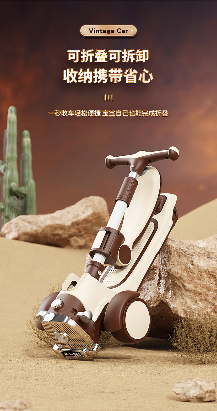 儿童滑板车带推把折叠宝宝滑行车1-3-7岁男女孩三合一玩具三轮车