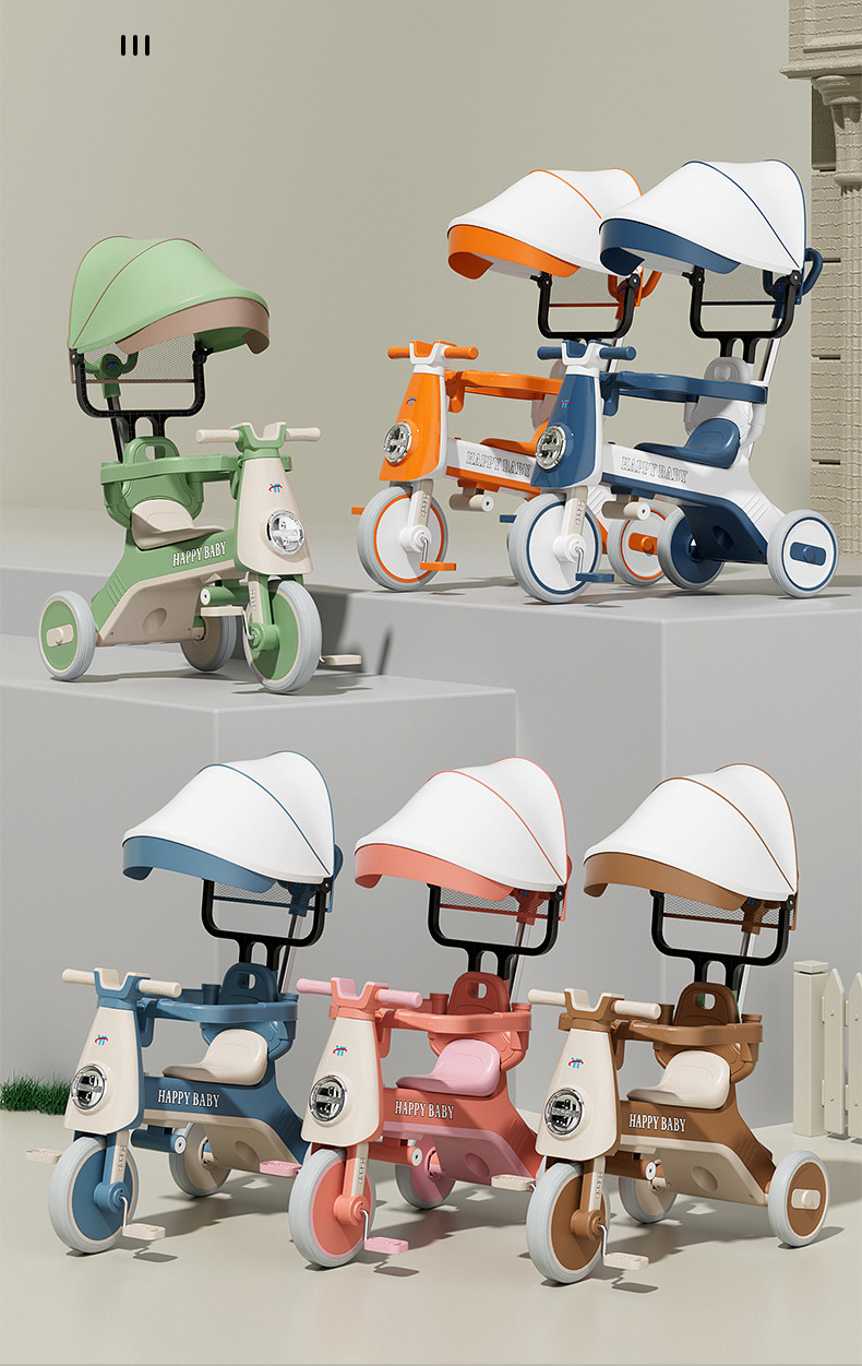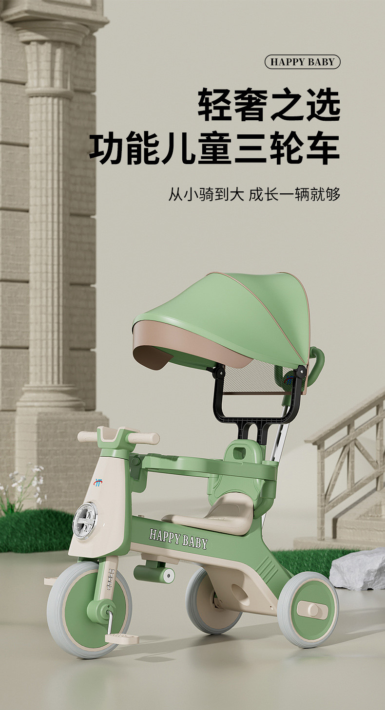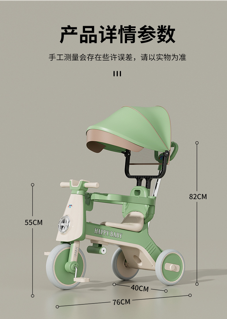 儿童三轮车脚踏车多种功能带推手1-3-6岁宝宝推车婴幼儿小孩手推车