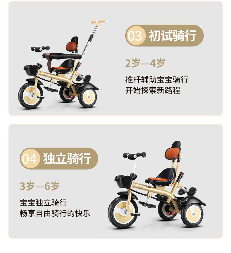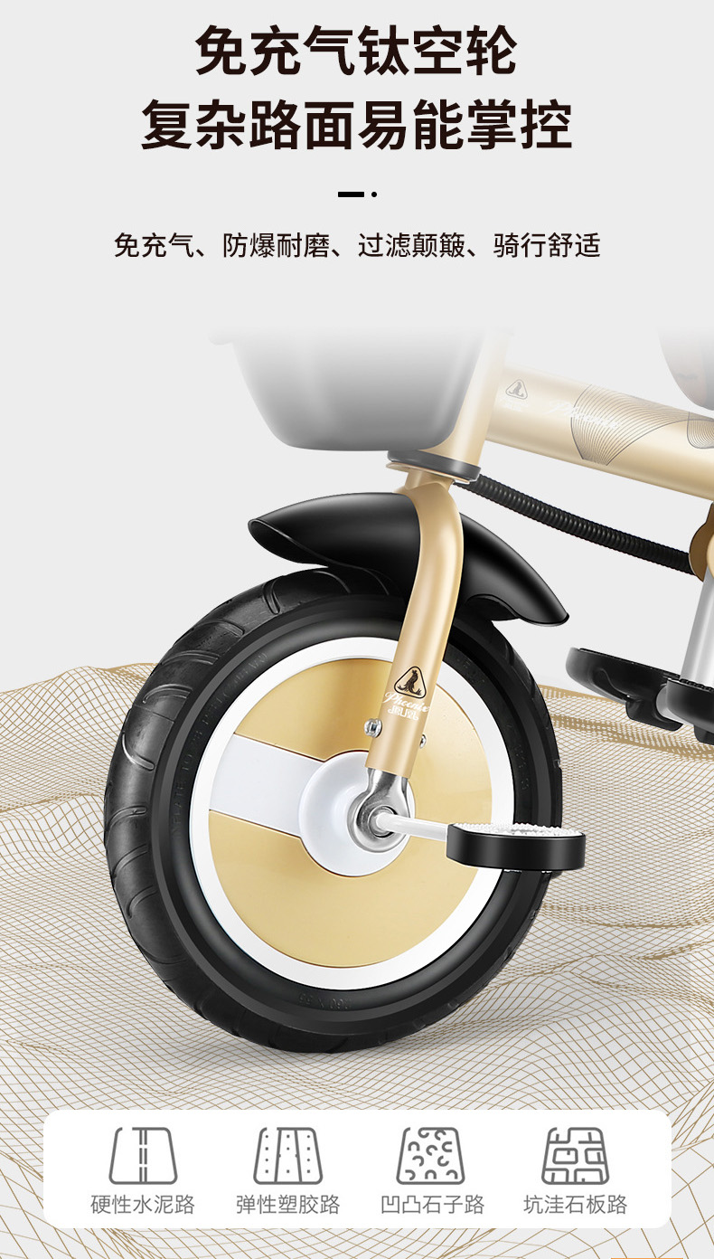 儿童三轮脚踏车1-3-5轻便宝宝自行车小孩子2-6岁大号手推车