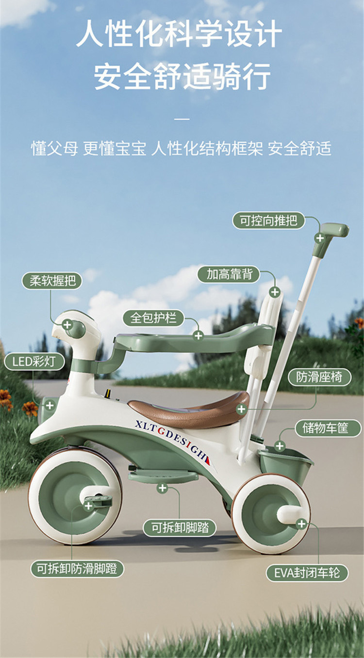 儿童手推车1-3岁 儿童滑行车可做人音乐灯光四轮滑行车