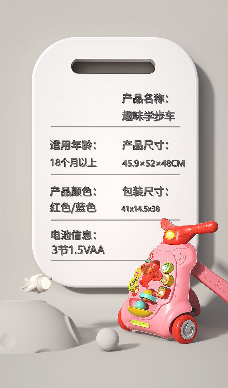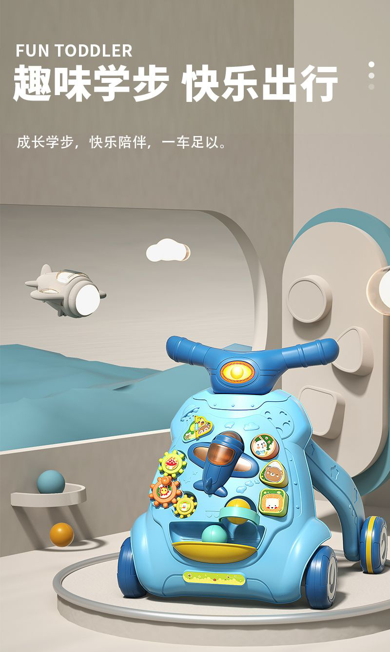 新款学步车多种功能音乐灯光手推车 防侧翻带增重水箱 可调速助步车
