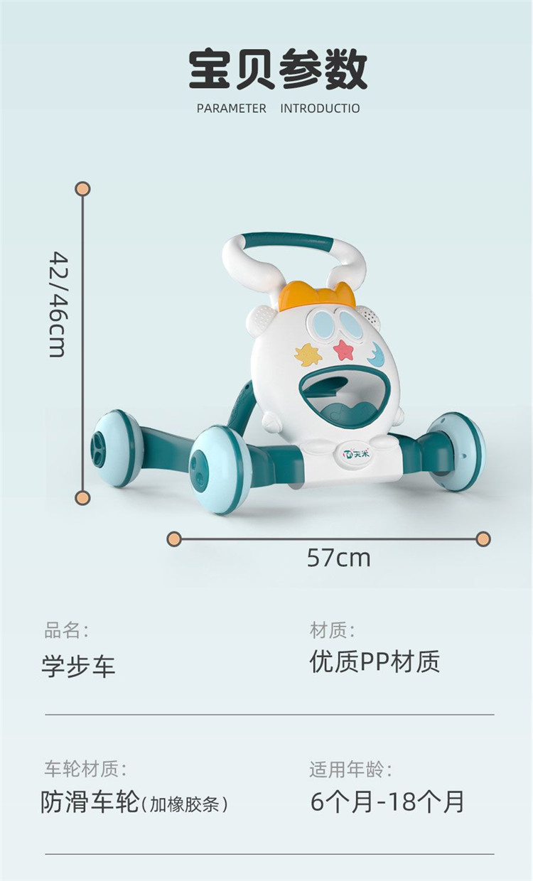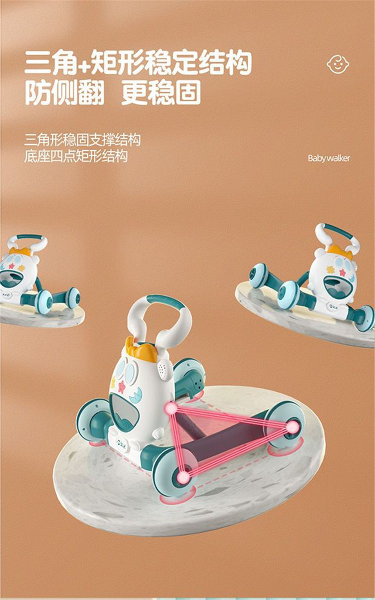 宝宝学步车防侧翻调速婴儿学走路助步车6-18个月手推车带音乐