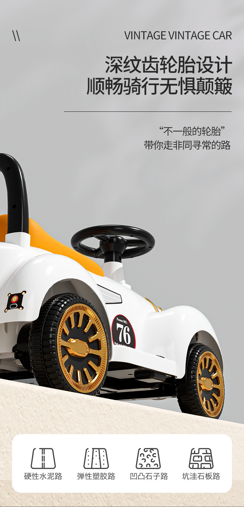 新款儿童电动老爷车新奇发光炫酷智能玩具童车带音乐