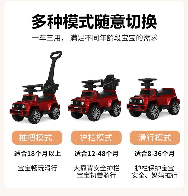 儿童手推滑行车男宝宝女孩婴儿1一3岁溜溜四轮玩具汽车可坐人电动