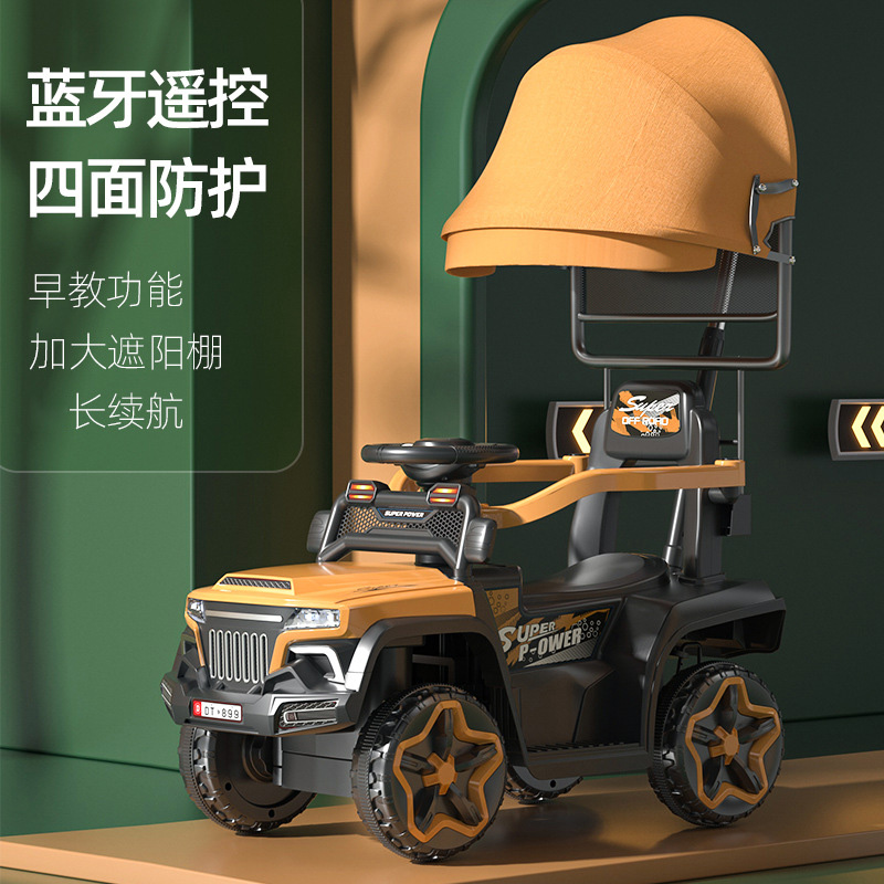 儿童电动四轮车加护栏手推电遥控男孩女孩可坐充电玩具车