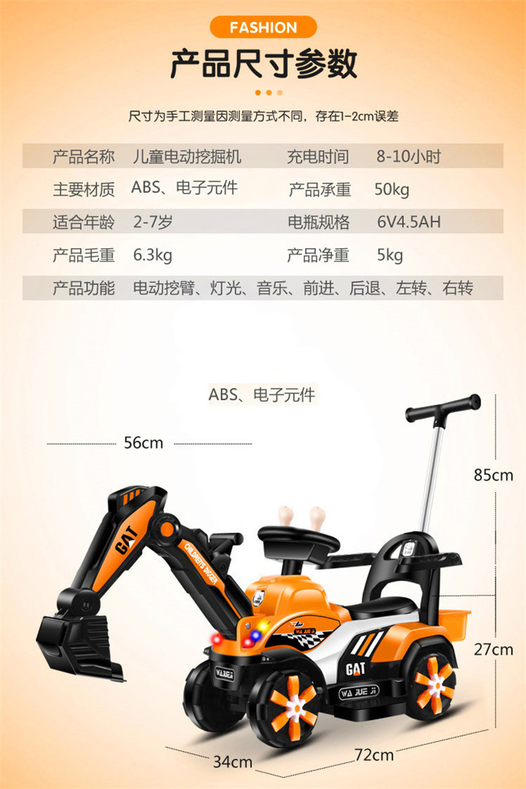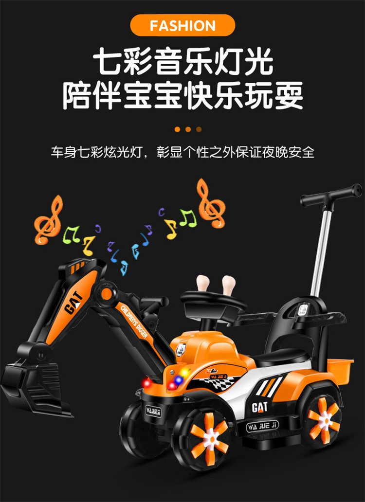 新款儿童挖掘机电动老挖机可坐人 玩具挖土机带灯光音乐