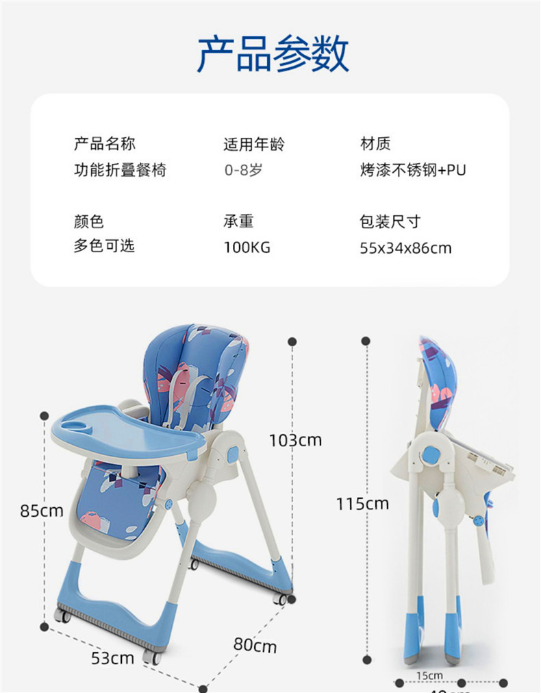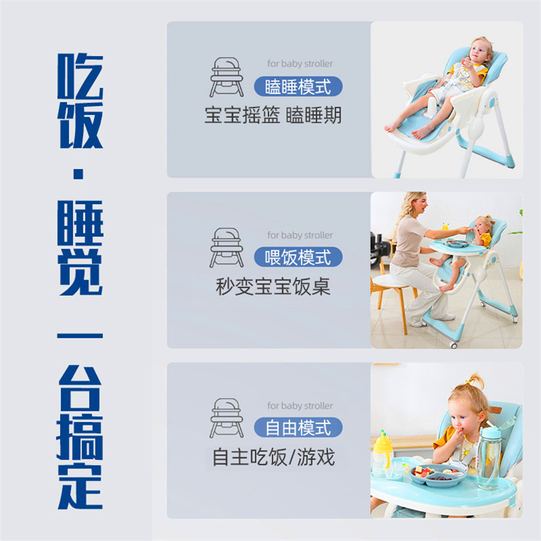 可坐可躺儿童成长吃饭椅 婴幼儿多功能可折叠轻便推宝宝餐椅
