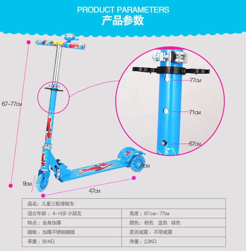 儿童三轮车闪光灯 可折叠踏板车轮滑车玩具童车 儿童滑板车