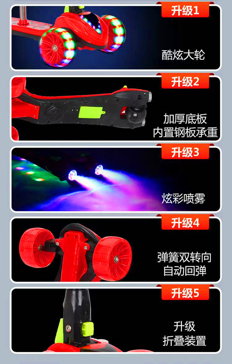 新款小孩溜溜车 1-6岁宝宝单脚男女踏板滑滑车带喷雾 儿童滑板车