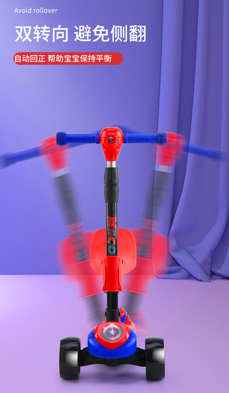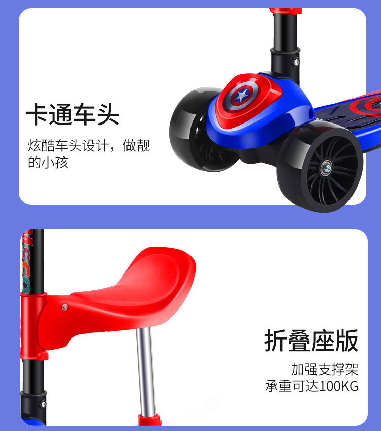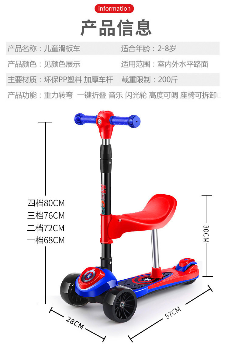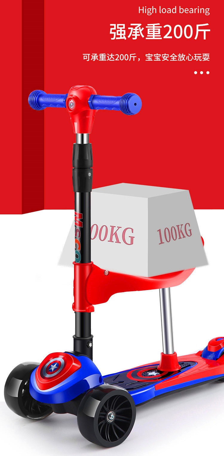 三轮踏板车可折叠 闪光轮溜溜车大童可坐可骑单脚 米高儿童滑板车