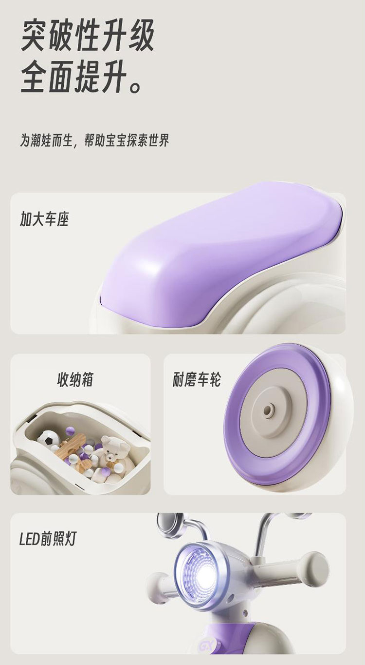 儿童摩托滑行车三轮车1-3岁男女宝宝助步车滑行 小孩可坐人可储物