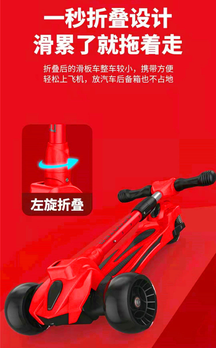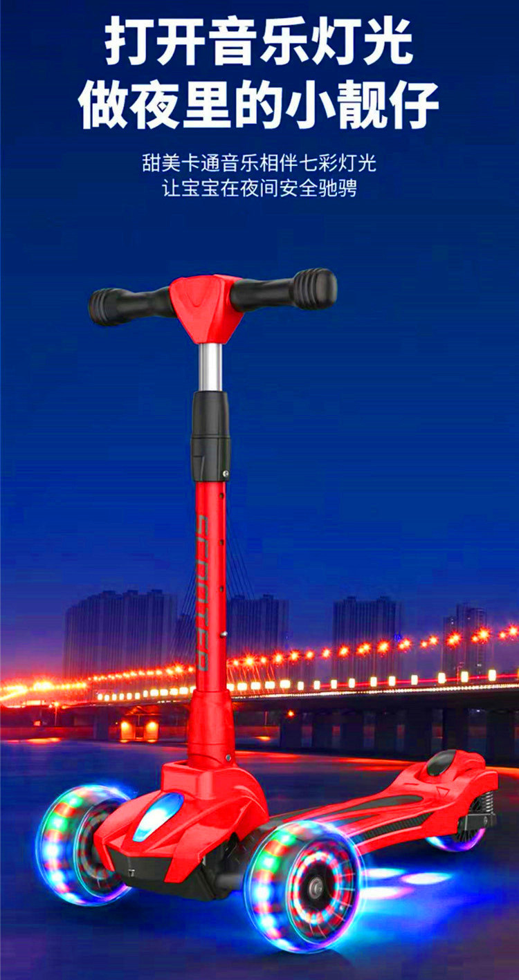 2-15岁可折叠三轮滑行踏板车 带音乐可调儿童滑板车