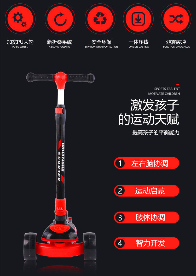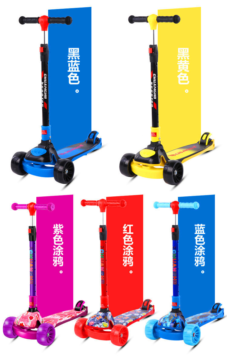折叠滑行车小孩初学者 音乐灯光滑滑车 宽轮单脚男女宝儿童滑板车