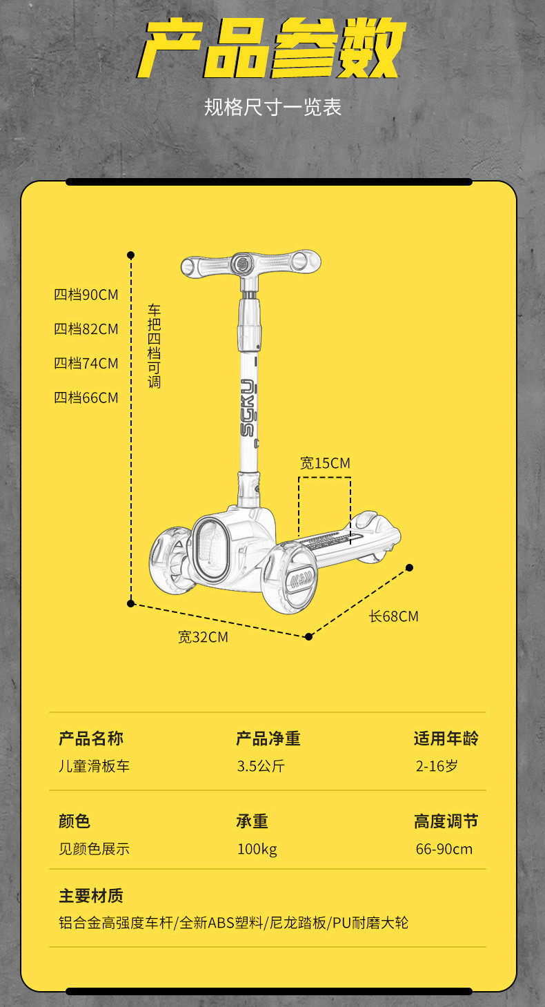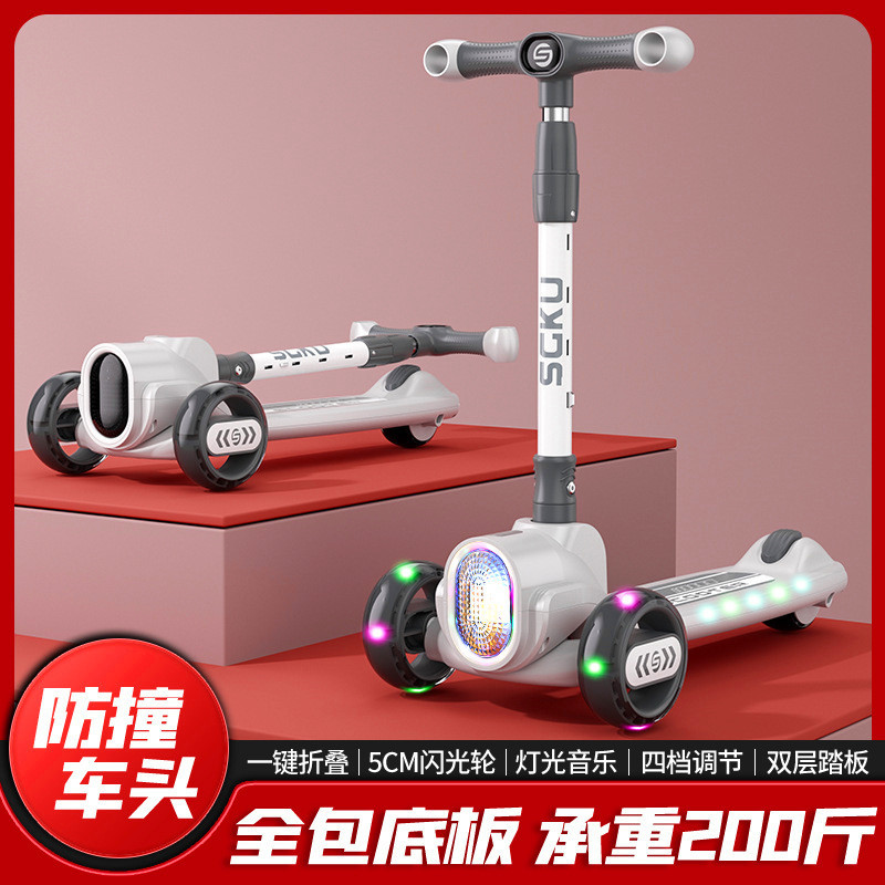 新款男女宝宝滑滑车2-8-16岁可折叠儿童闪光轮溜溜车 儿童滑板车