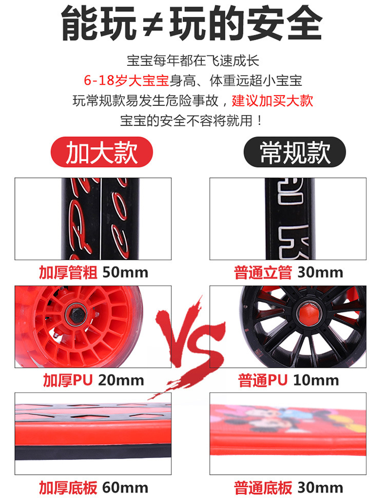 滑板车儿童中大童6-14岁以上青少年宽轮闪光溜溜车滑滑车