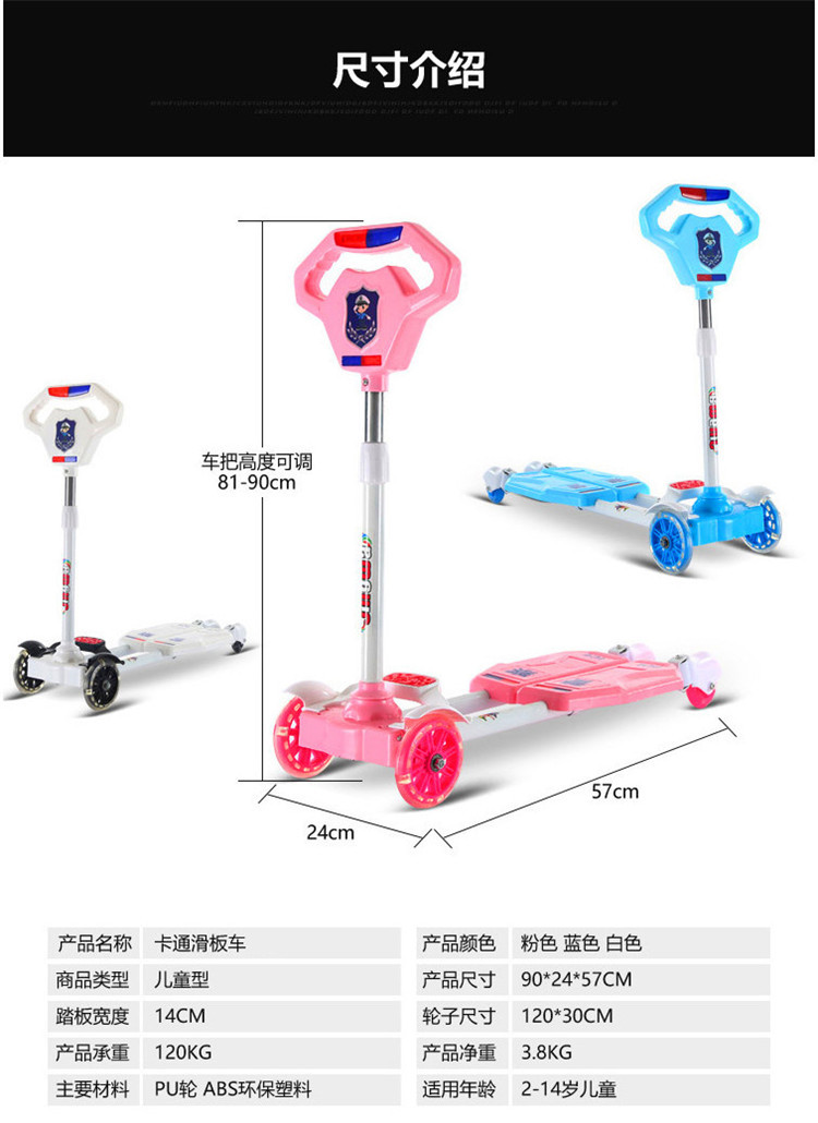 儿童滑板车儿童3轮滑板车制造商婴儿滑板车的孩子与灯