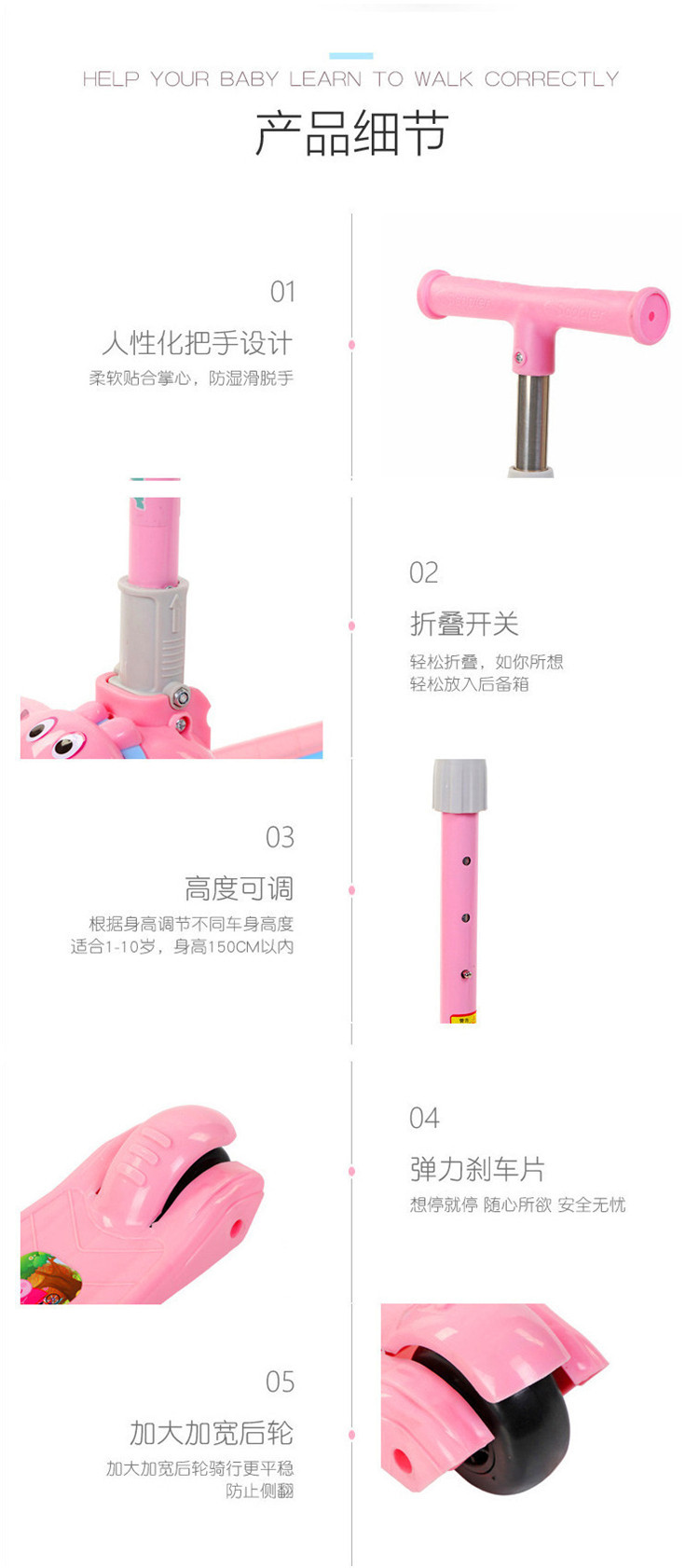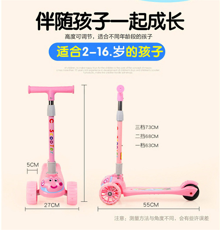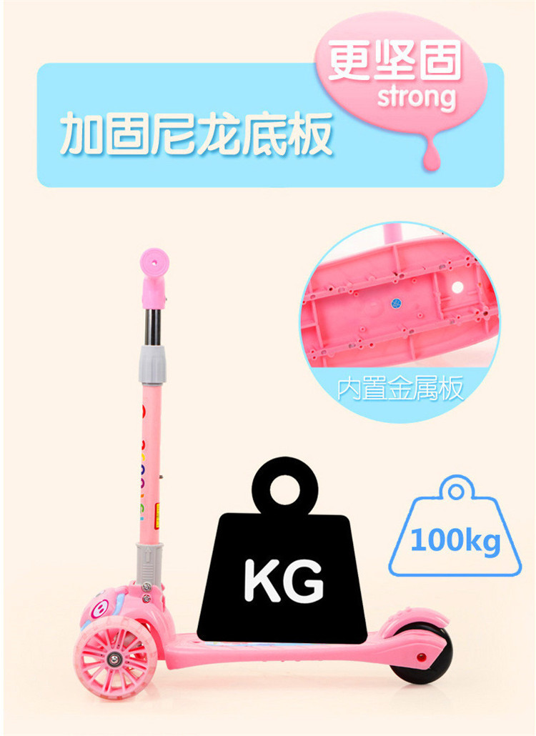 儿童滑板车闪光轮可折叠可调节米高车儿童滑板车儿童三轮车厂家