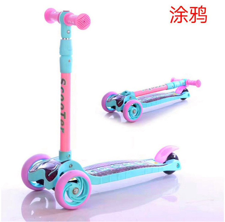新款塑料米高滑板车儿童脚踏车儿童高低可调折叠环保防侧翻