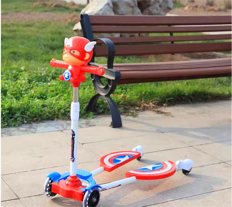 儿童蛙式剪刀车滑板车扭扭车四轮脚踏闪光滑行车3-8岁猫头鹰