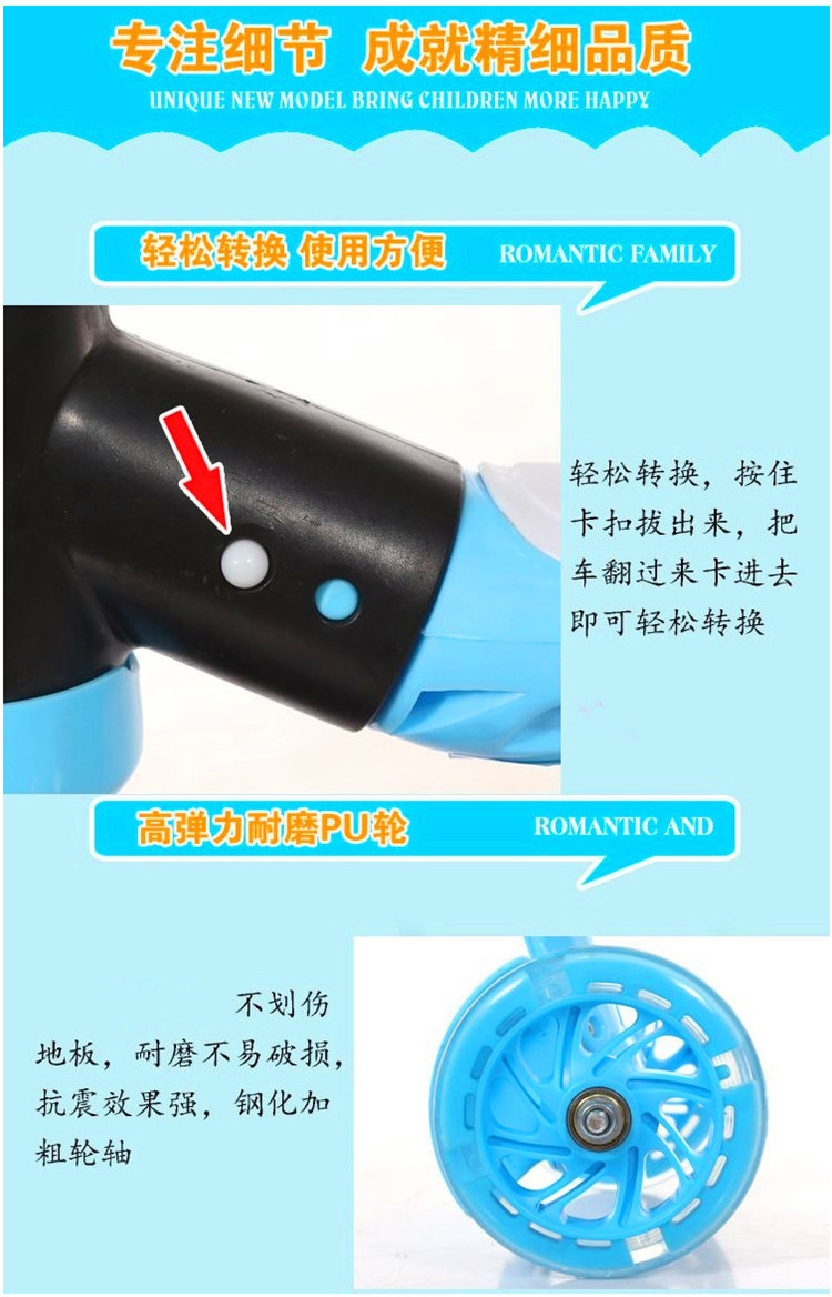 儿童滑板车剪刀车2-10岁 两用滑行车三轮轮滑车 发光轮可折叠款