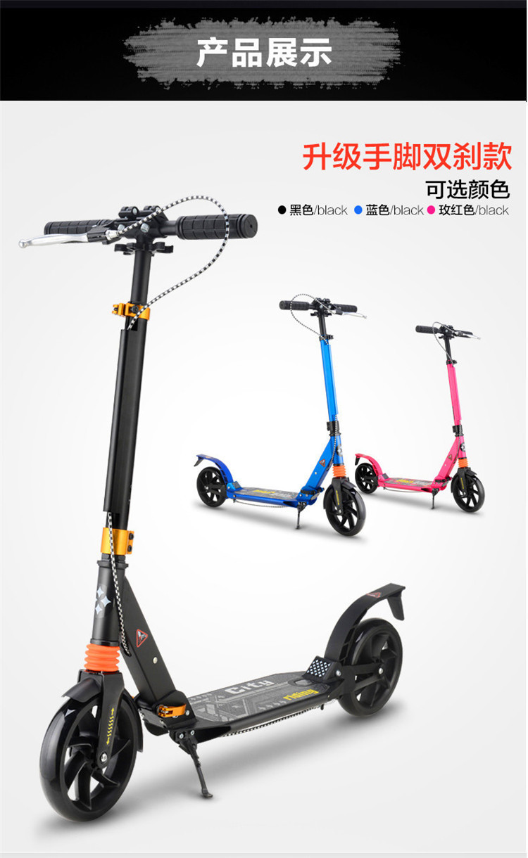 成人滑板车全铝手刹双减震两轮可折叠上班校园城市代步滑行车