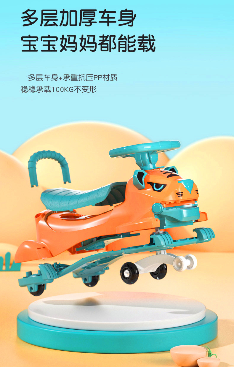 男女宝宝溜溜车 大人可坐新款摇摆扭扭车 小老虎儿童扭扭车