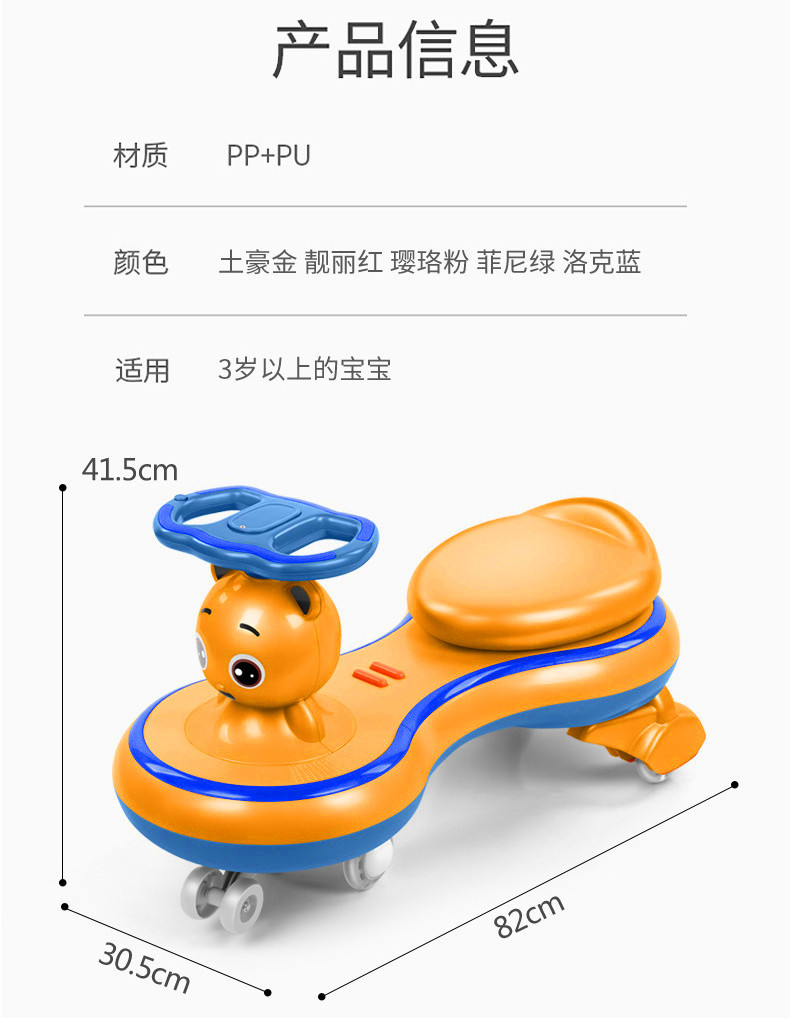 带音乐静音万向轮摇摆溜溜滑行车 男女2-7岁宝宝滑行车儿童扭扭车
