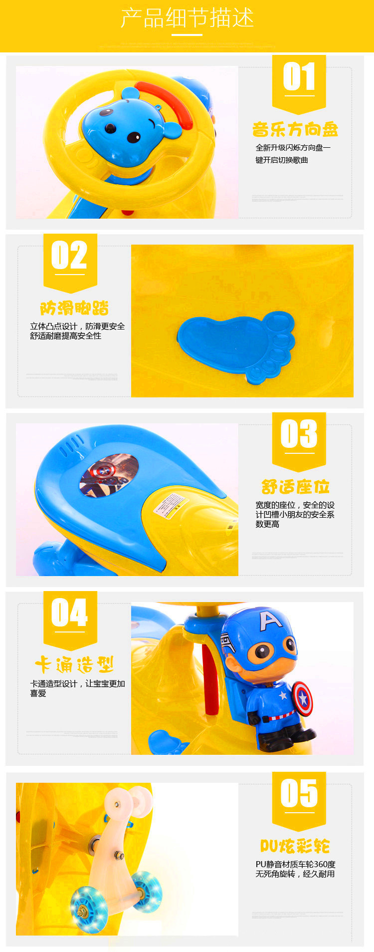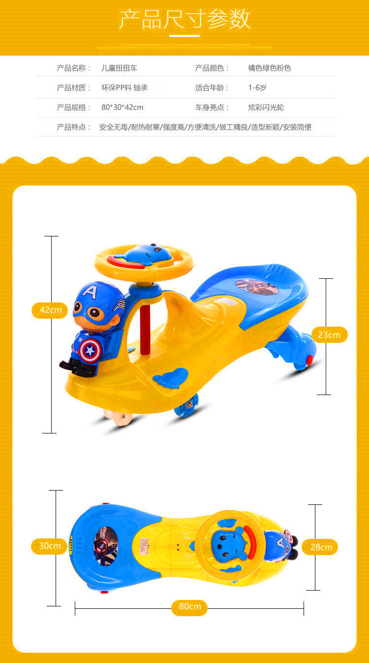 滑行摇摆车溜溜车滑行车 带音乐灯光男女宝宝扭扭车 儿童扭扭车
