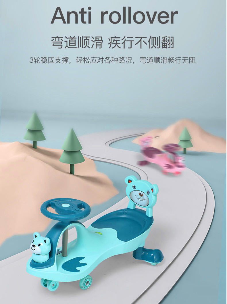 新款防侧翻1到8岁静音轮音乐儿童玩具摇摆车宝宝可滑行儿童扭扭车