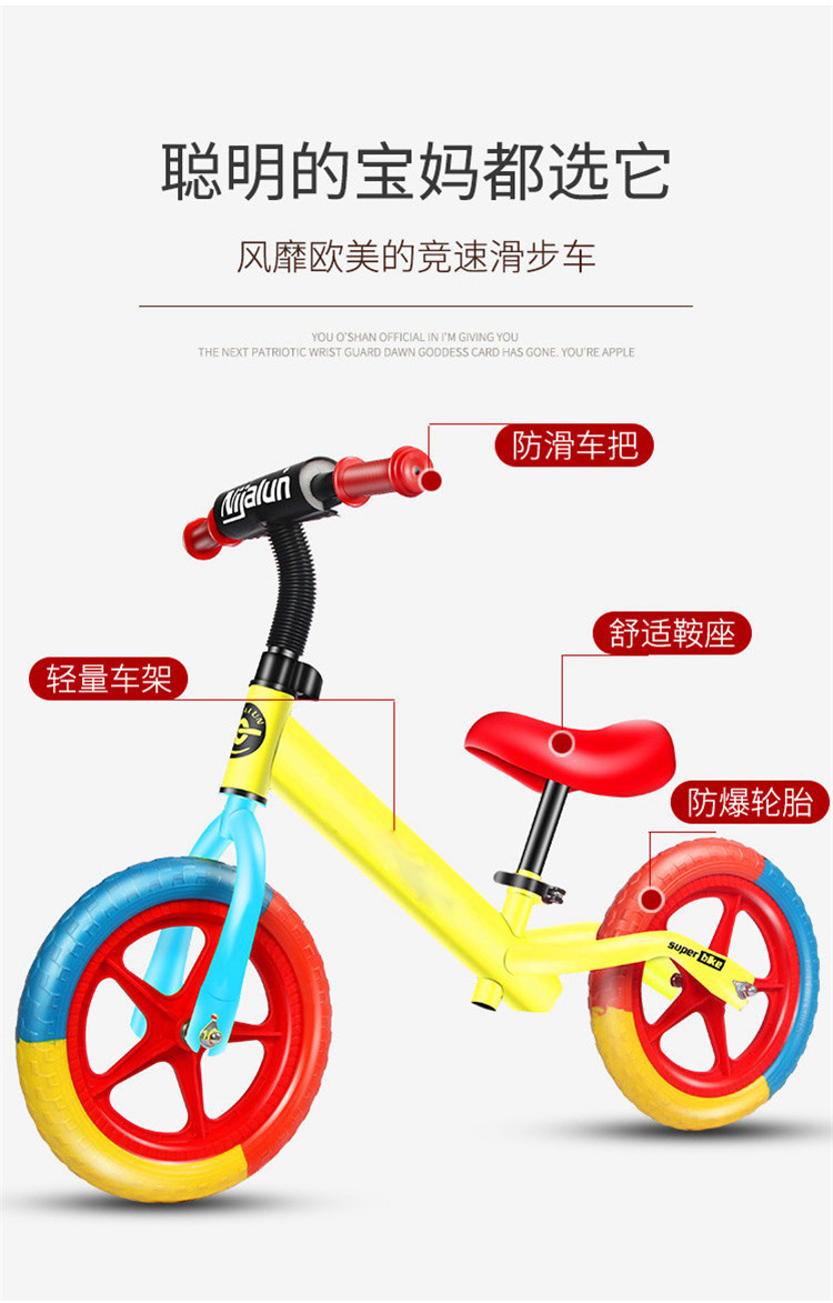 新款礼品儿童平衡车 12寸儿童无脚踏滑步自行车小孩滑行车童车