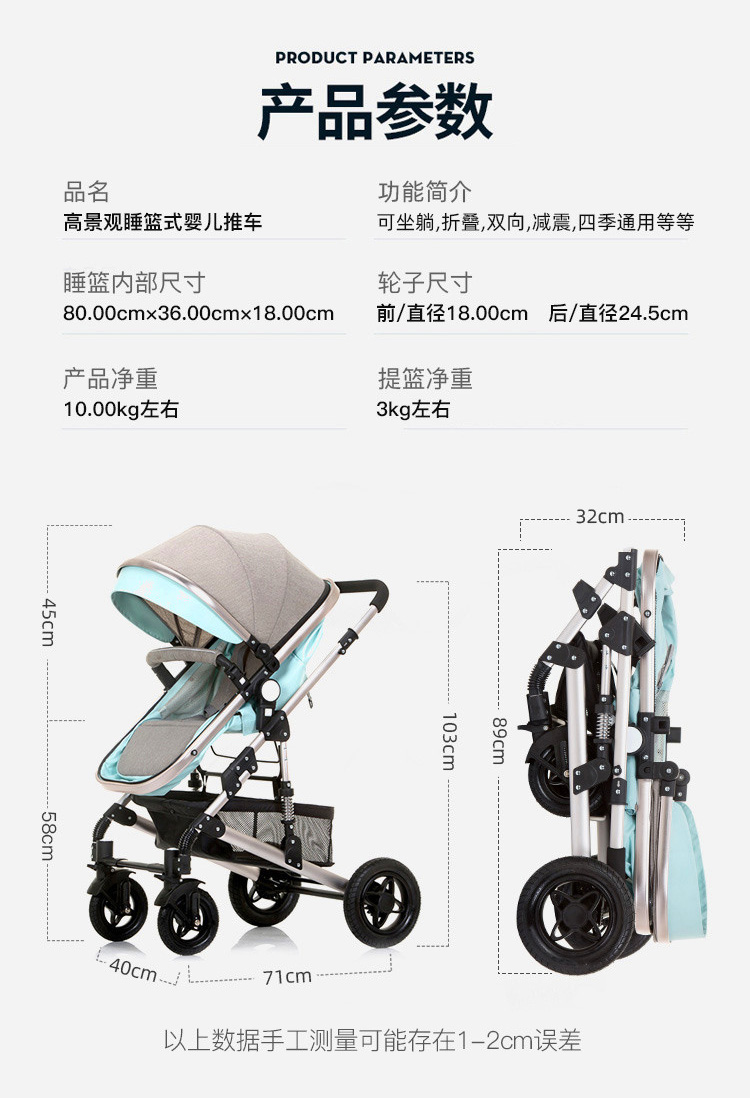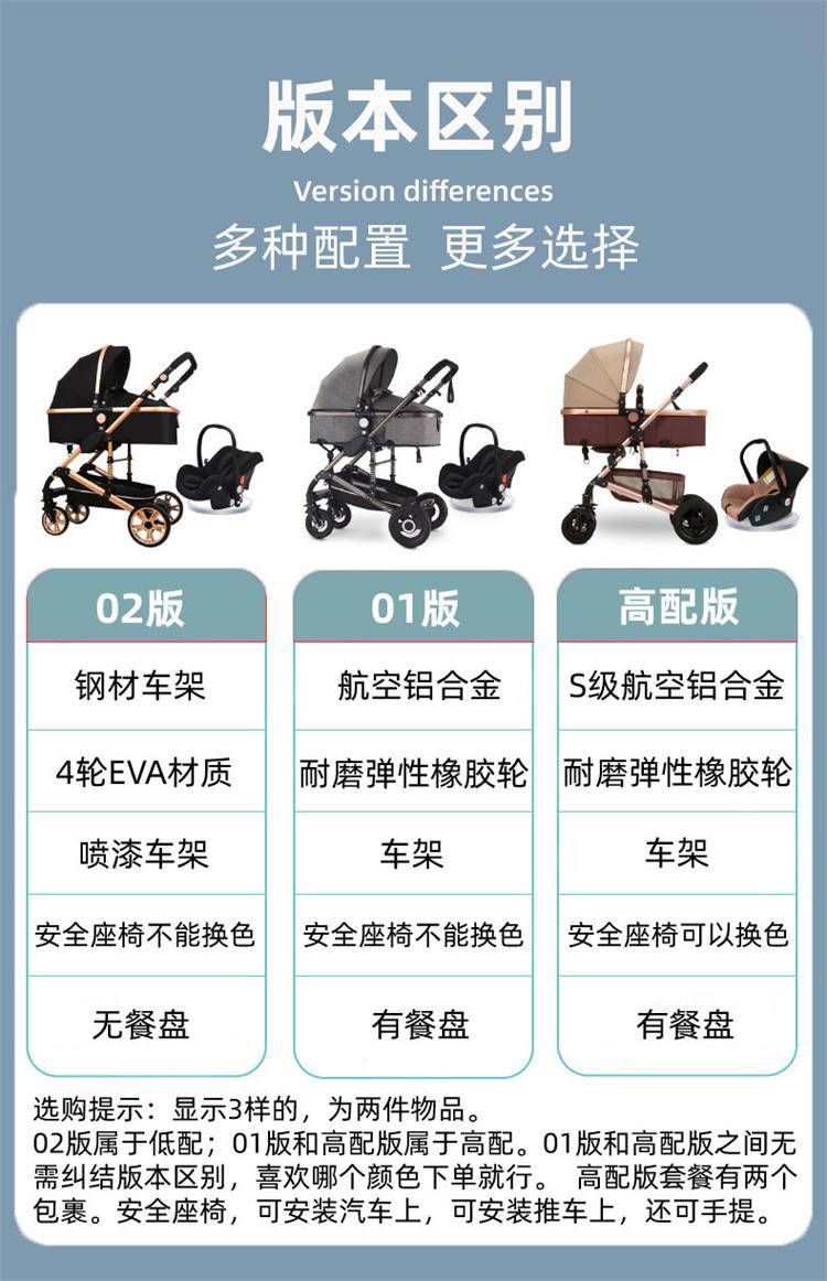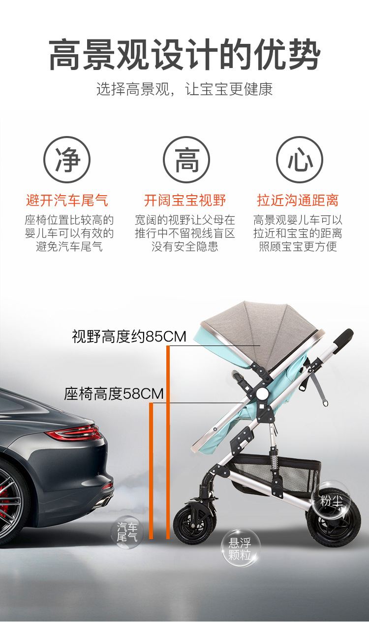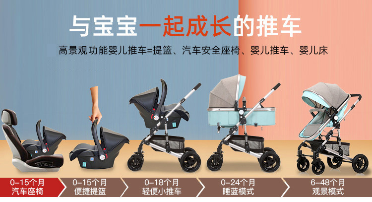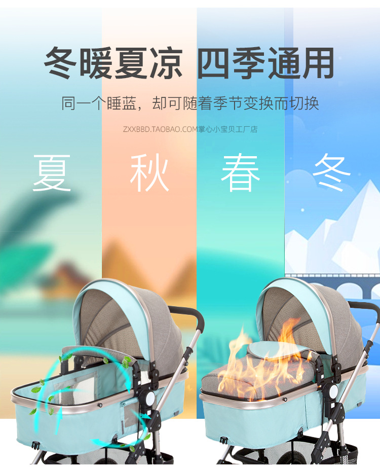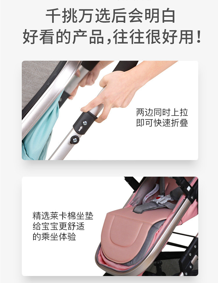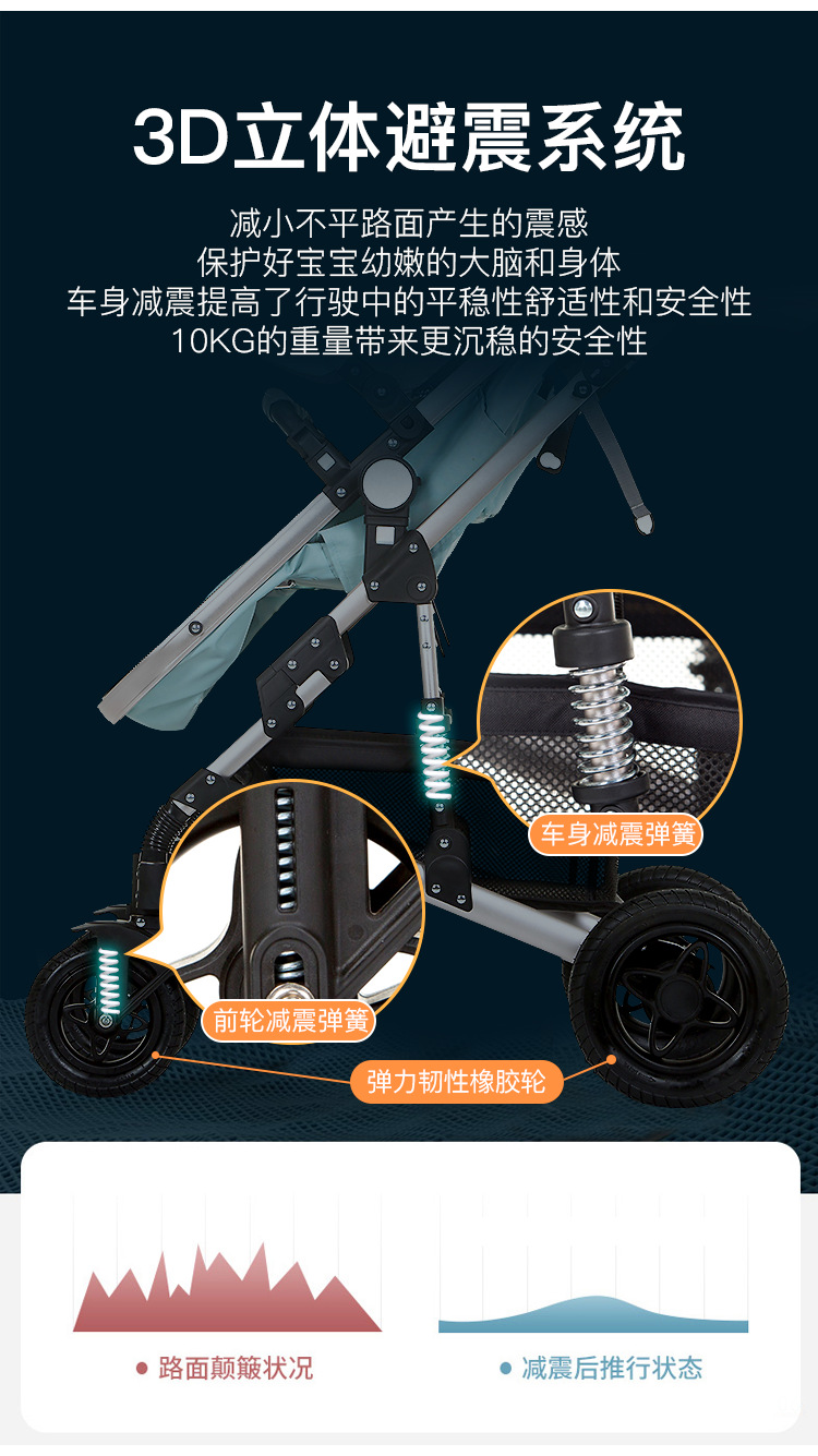 婴儿推车可坐可躺折叠避震提篮三合一双向新生儿宝宝高景观婴儿车