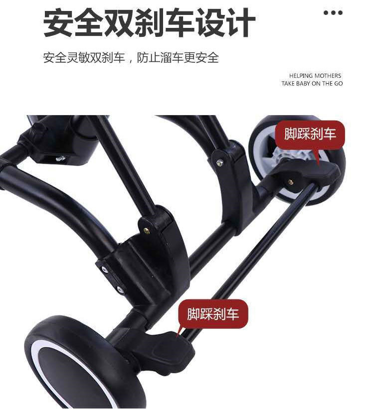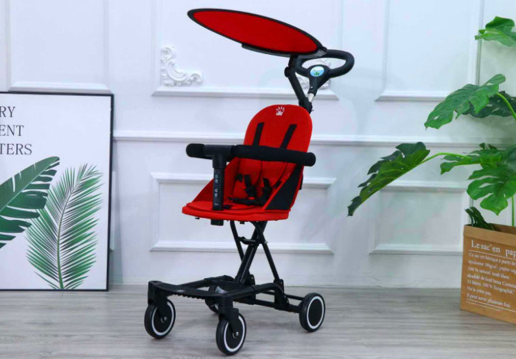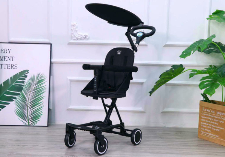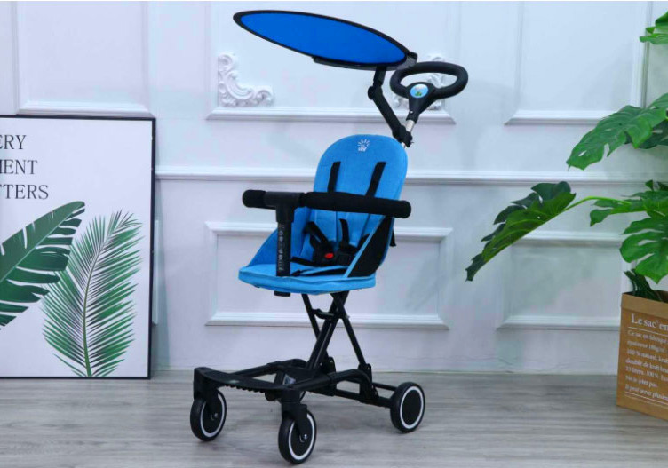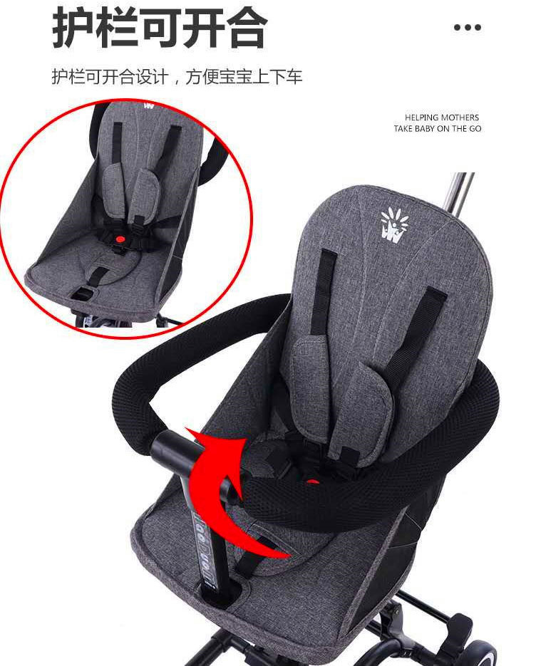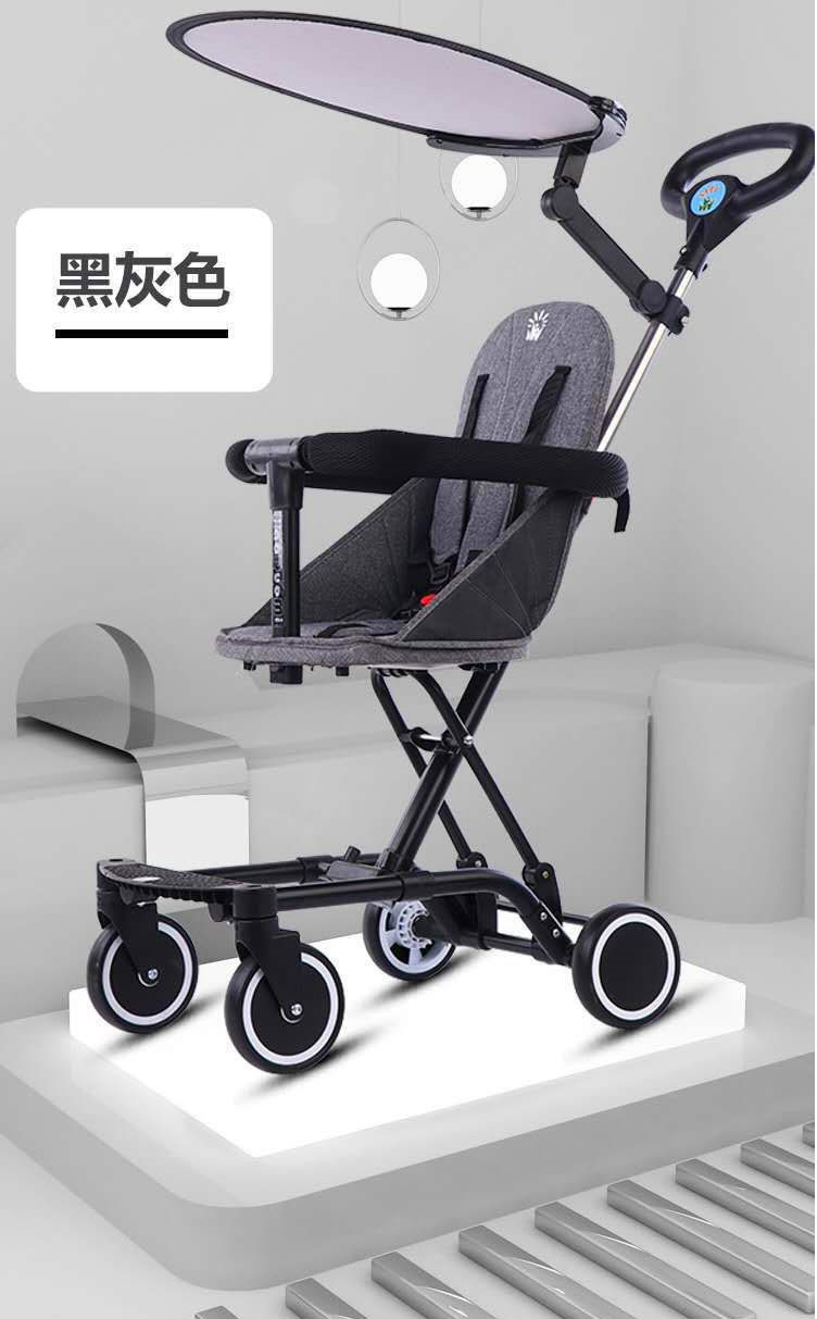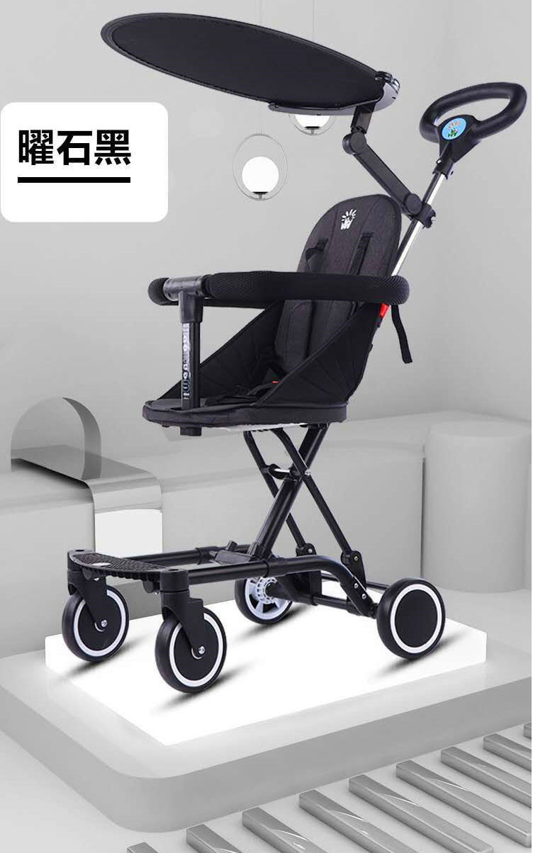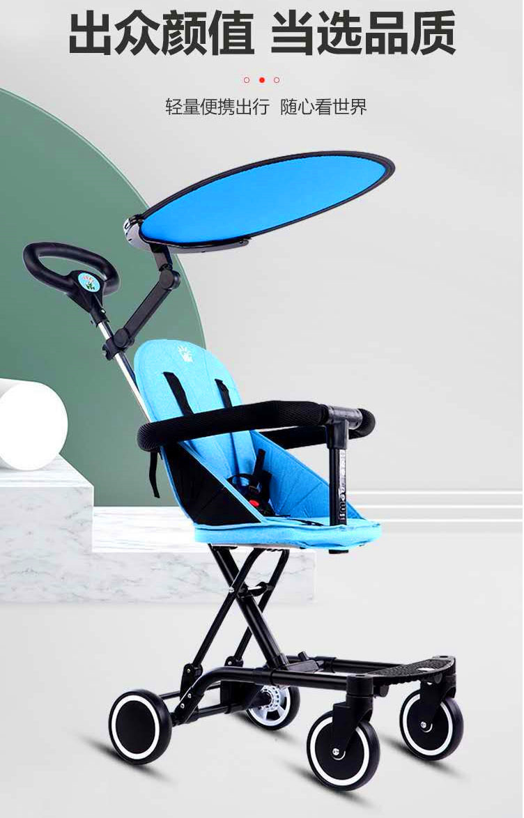 新款儿童四轮推车,遛娃高景观婴儿溜娃推车,可折叠带遮阳棚
