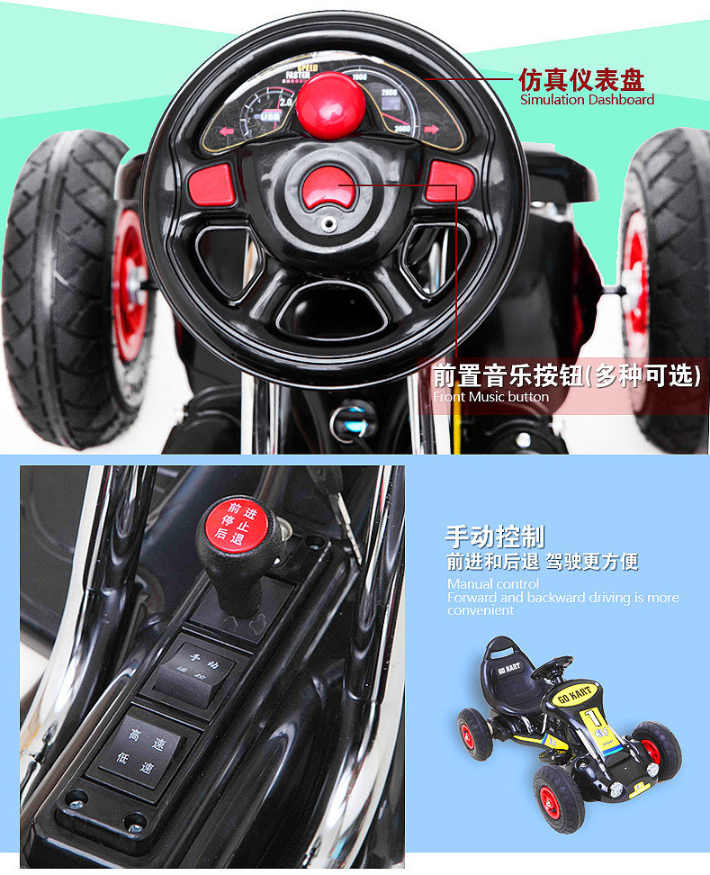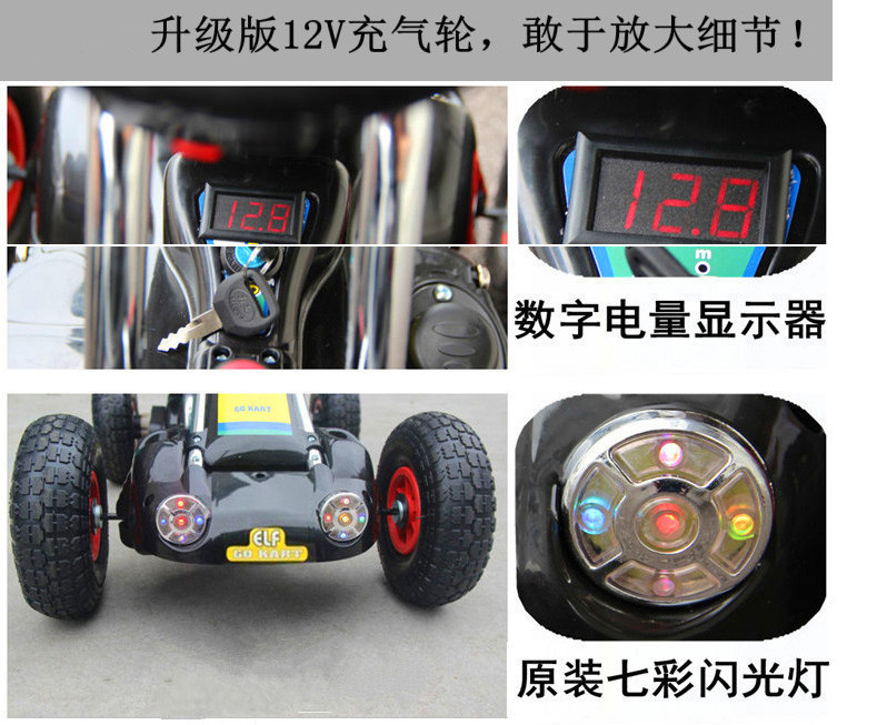 儿童电动卡丁车充气轮小孩四轮可坐遥控广场宝宝玩具汽车沙滩童车