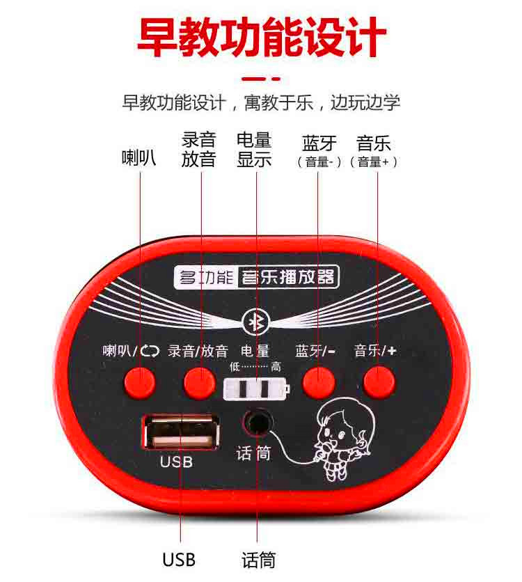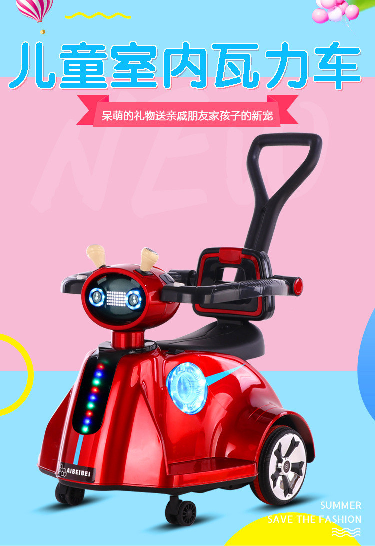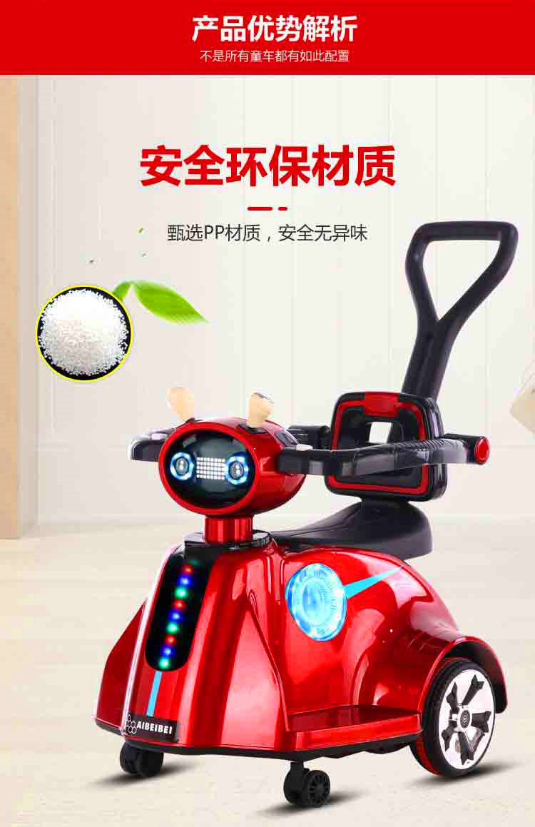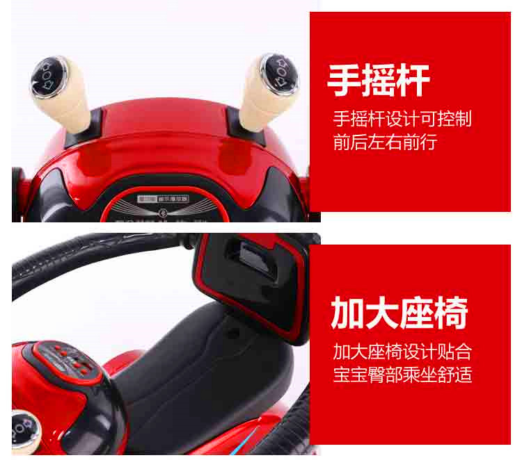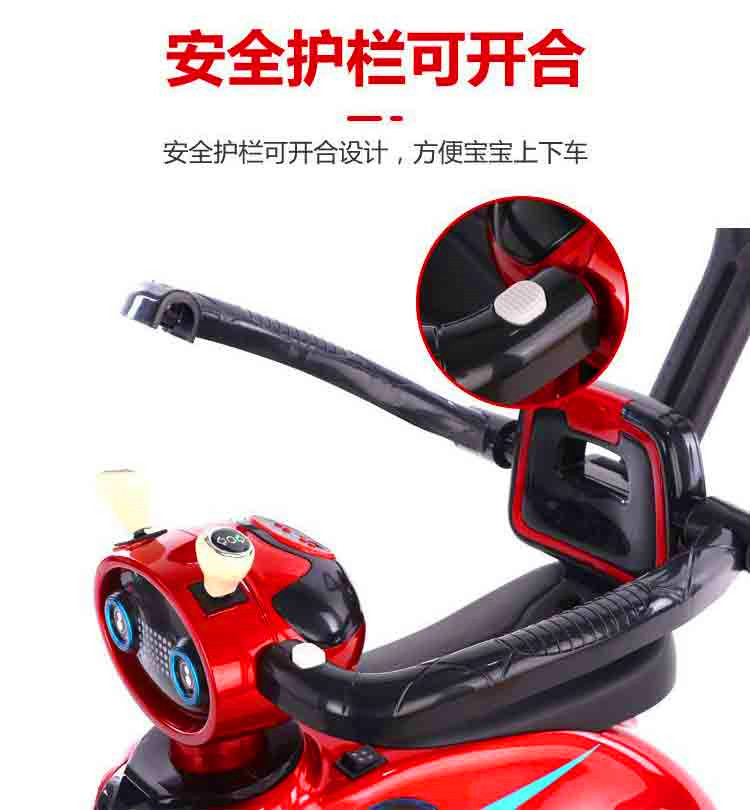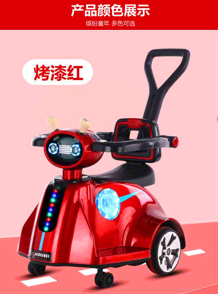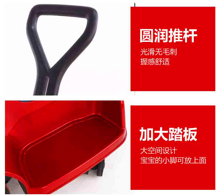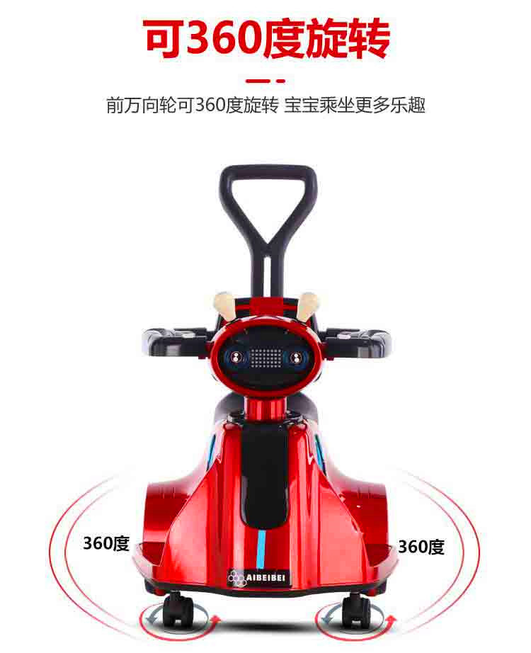 独立摇摆,双驱电,LED炫酷,流水灯设计,360度任意旋转,全方位加宽护栏,自动离合电机,人性化推把,蓝牙播放器,儿歌,早教,USB插口,2.4G蓝牙遥控器,一键启动,缓起动。
