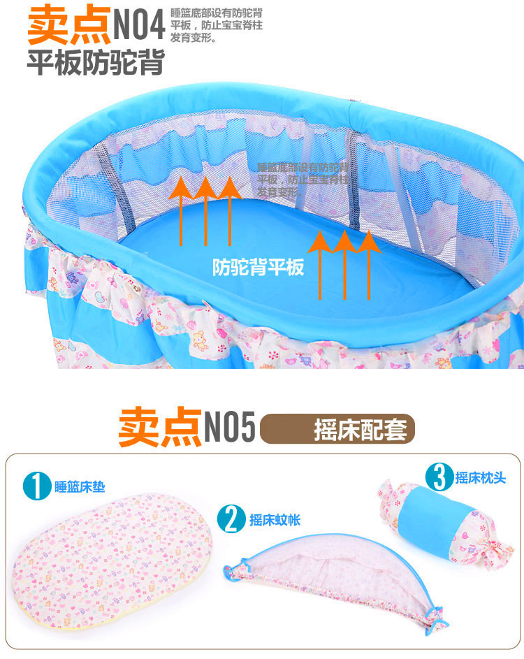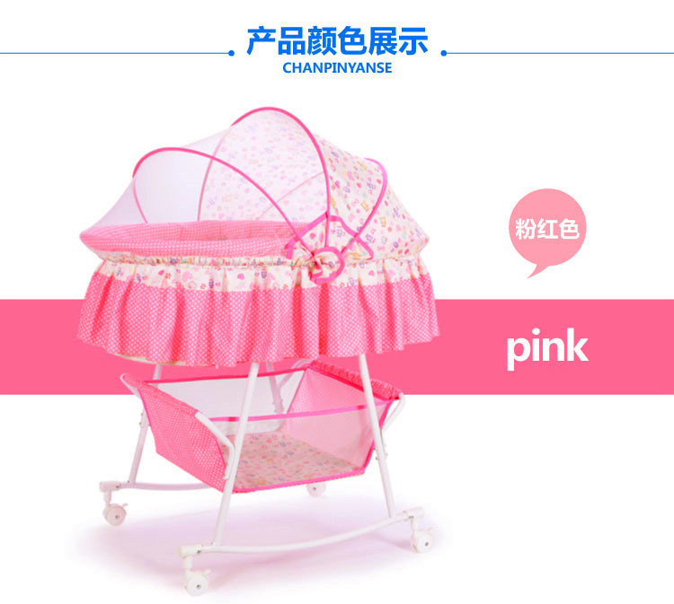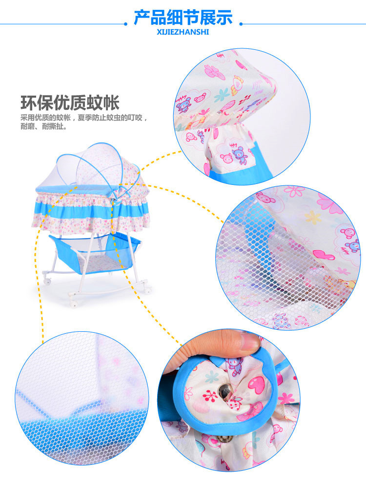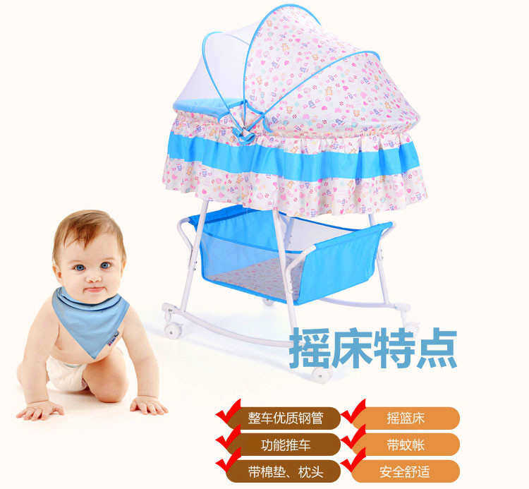 小摇床新生儿床摇摇床带蚊帐多功能安抚bb床带滚轮睡篮婴儿摇篮床